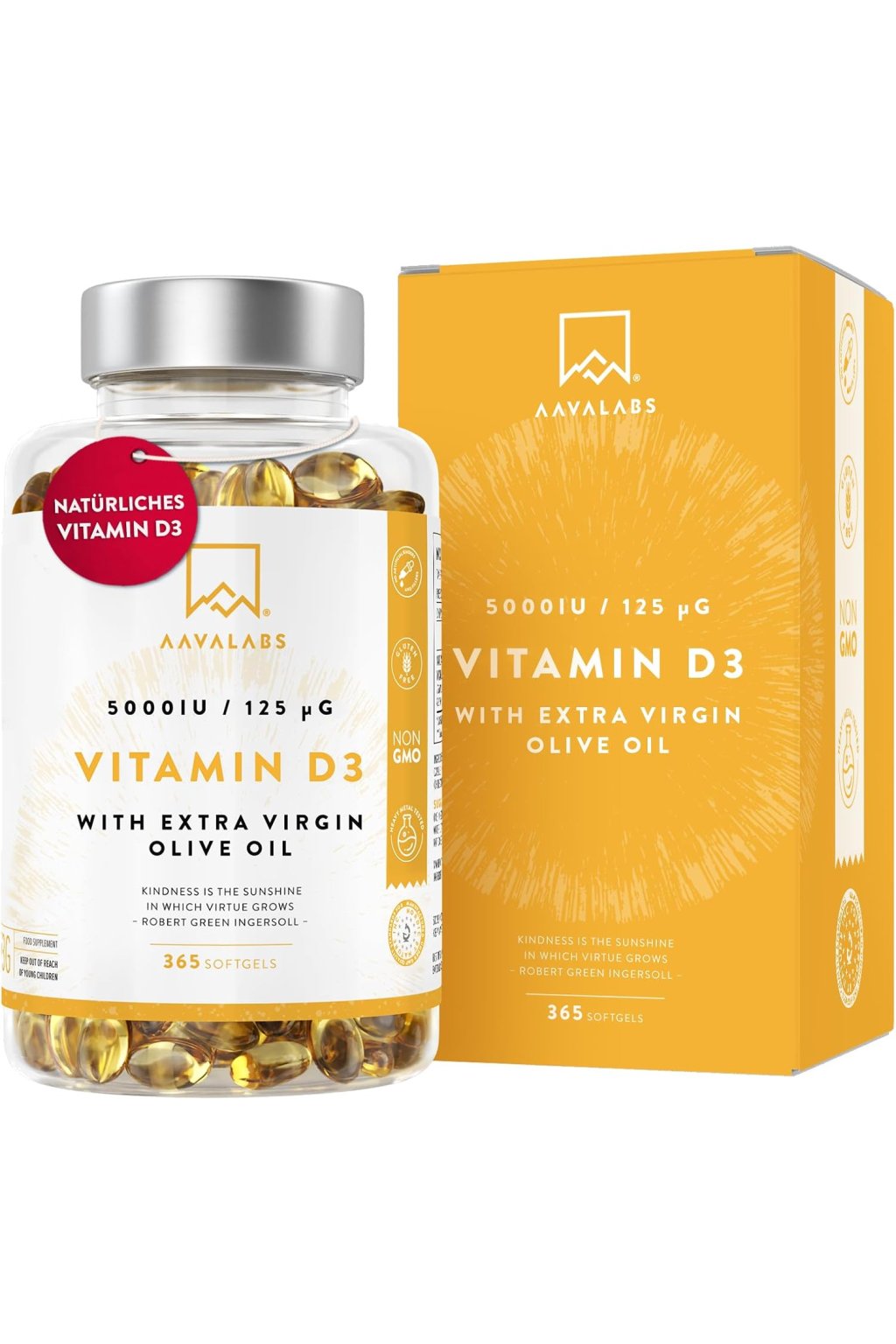 AAVALABS Vysoká dávka vitamínu D3 [5000 IU] 365 kapsúl