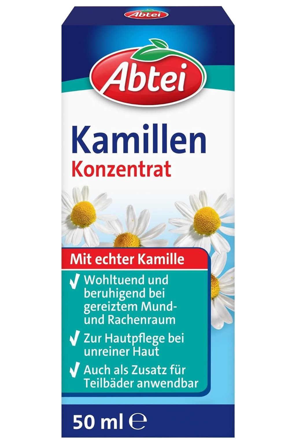 Abtei Harmančekový koncentrát 50 ml je viacúčelový prírodný extrakt s vysokým obsahom harmančeka, určený na upokojujúcu a regeneračnú starostlivosť o pleť, vlasy aj ústnu dutinu. Vďaka silnému protizápalovému a antibakteriálnemu účinku sa osvedčuje pri podráždení pokožky, drobných poraneniach, ako prísada do obkladov či kúpeľov, alebo pri výplachu ústnej dutiny. Je vhodný aj na podráždenú pokožku hlavy či ako tonikum po holení. Jemná vôňa harmančeka zároveň upokojuje zmysly. Praktické balenie s dávkovaním umožňuje presné použitie podľa potreby doma aj na cestách.