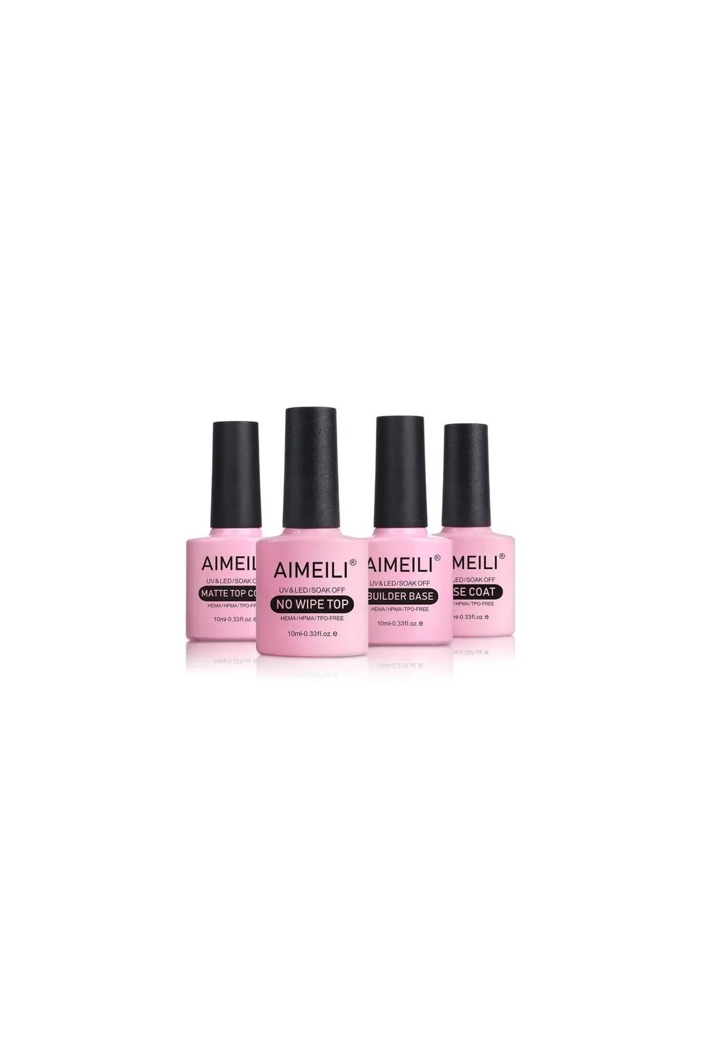 AIMEILI No Wipe Top Coat a Base Coat, Matte Top Coat, Builder Base Semi-permanentný matný a lesklý lak na nechty 4X10ml