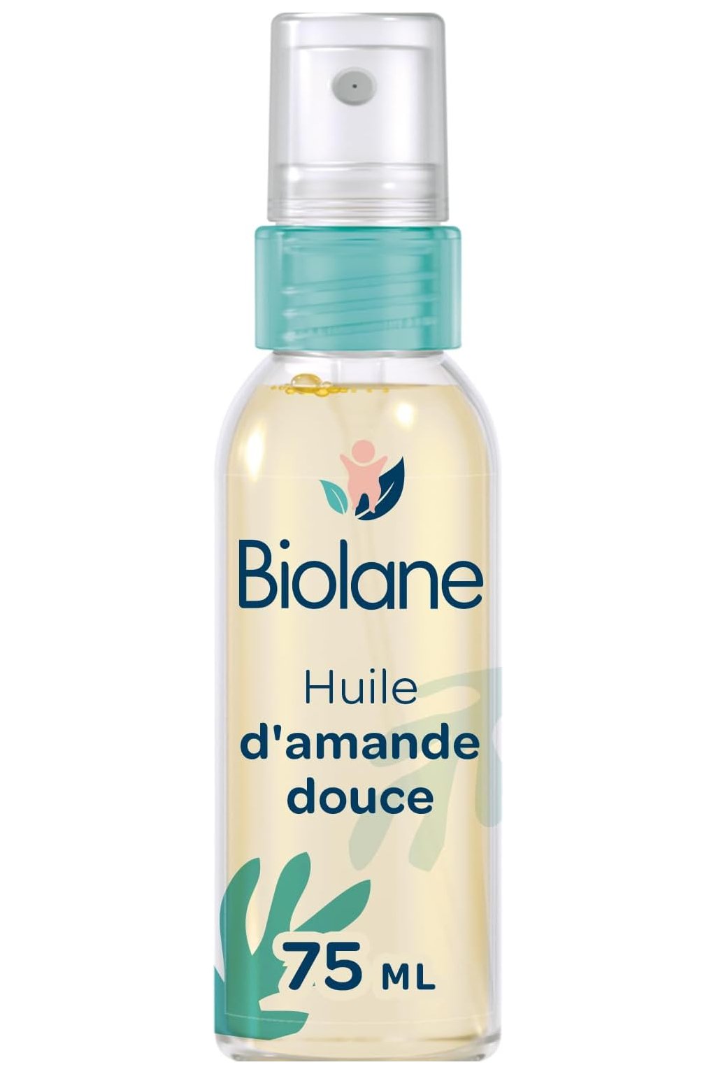 Doprajte svojmu dieťatku sladký mandľový olej Biolane, sprej, ktorý vyživuje a zjemňuje pokožku vášho dieťaťa.