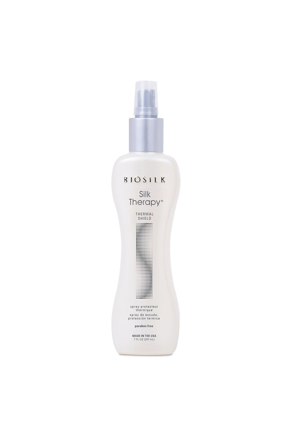 BioSilk Silk Therapy Thermal Shield je ochranný sprej vytvorený na zníženie poškodenia vlasov spôsobeného tepelným stylingom a zároveň pomáha udržať tvar a fixáciu účesu. Jeho ľahká textúra sa rovnomerne rozprestrie po vlasoch a vytvorí ochranný film, ktorý minimalizuje lámanie a vysušovanie pri žehlení, kulmovaní či fénovaní. Vlasy zostávajú hladké, lesklé a lepšie kontrolovateľné, pričom sprej nezaťažuje a nezlepuje. Podporuje jemnú pevnosť účesu, dodáva prirodzený lesk a zanecháva príjemný pocit hebkosti. Je ideálny pre všetky typy vlasov, najmä pre suché a teplom namáhané.