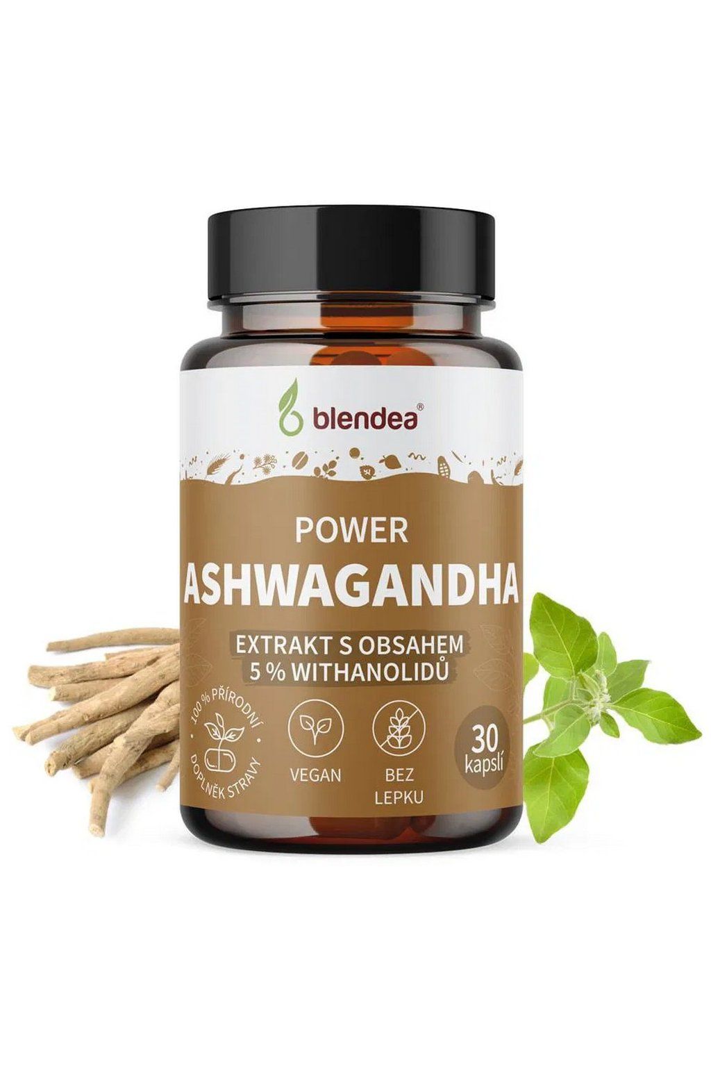 Extrakt z ašvagandy Blendea, 30 kapsúl, silný adaptogénny doplnok známy svojou schopnosťou znižovať stres, podporovať hladinu energie a podporovať celkovú pohodu prostredníctvom výhod ašvagandy.