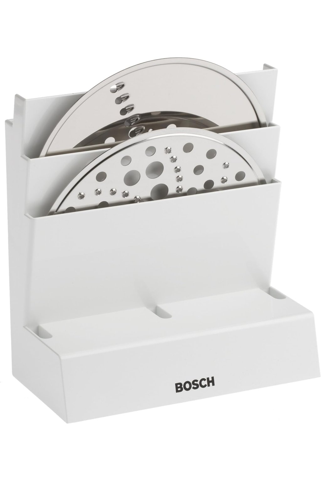 Bosch MUZ4ZT1 držiak príslušenstva je praktický doplnok pre každý kuchynský robot MUM4, ktorý zabezpečuje prehľadné a bezpečné uloženie všetkých dôležitých nástrojov. Tento držiak v bielom prevedení pojme 3 kotúče a miešacie nástroje priebežného krájača, čím udržiava pracovnú plochu čistú a poriadok v kuchyni.