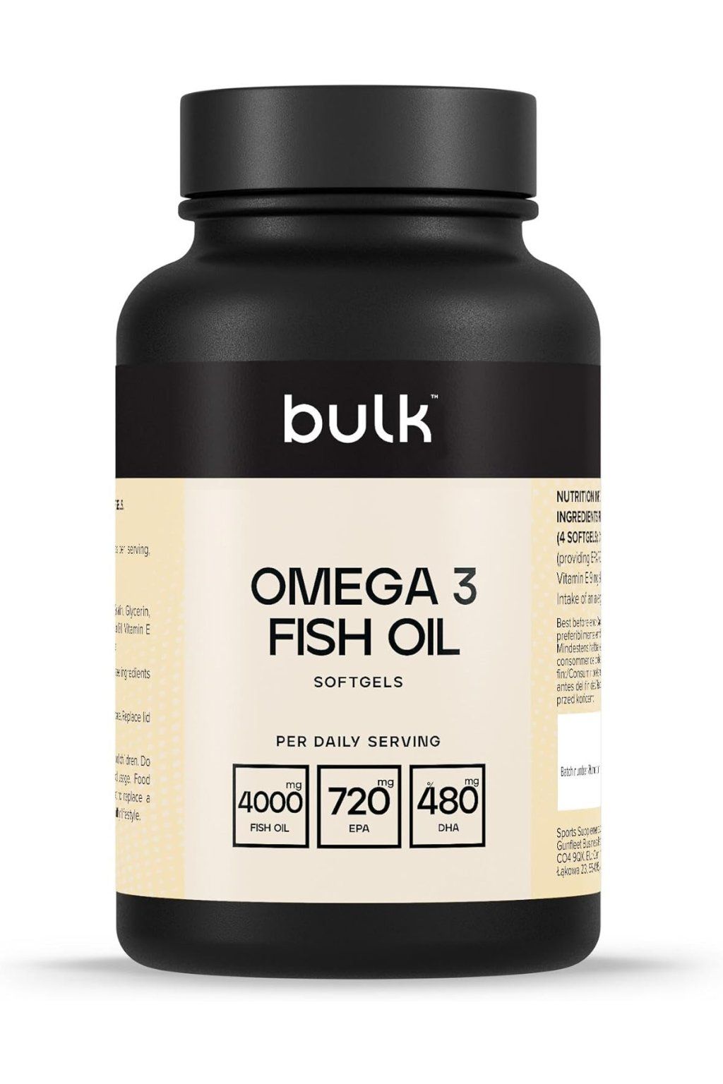 Bulk Rybí olej s omega-3 mastnými kyselinami 270 kapsúl je výživový doplnok určený na každodenné dopĺňanie esenciálnych omega-3 mastných kyselín EPA a DHA, ktoré si telo nedokáže samo vytvoriť. Tieto látky pochádzajú z rybieho oleja a prispievajú k správnej funkcii srdca, mozgu a zraku. Produkt je vhodný najmä pre ľudí, ktorí nekonzumujú pravidelne tučné morské ryby alebo chcú jednoducho podporiť svoj celkový zdravý životný štýl. Praktické kapsuly umožňujú jednoduché dávkovanie bez typickej rybej chuti.