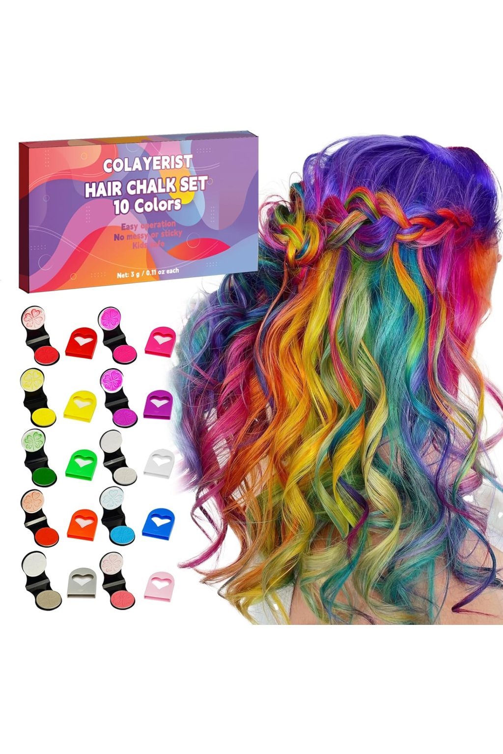 COLAYERIST Krieda na vlasy pre dievčatá je sada 10 ks dočasných kried na vlasy, ktoré umožňujú deťom experimentovať s farbami a vytvárať zábavné a farebné účesy. Tento produkt je ideálny pre deti, ktoré si chcú pridať do svojich vlasov farebné akcenty na krátky čas.