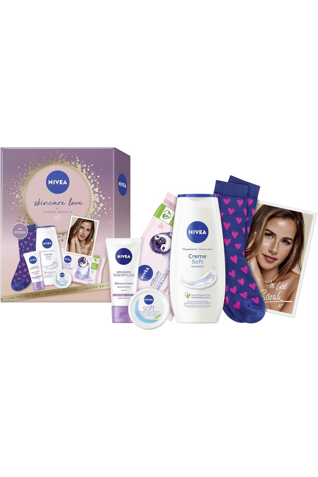 Sada NIVEA Skincare Love s krémom NIVEA soft (50 ml), sprchovým gélom soft (250 ml), denným krémom (50 ml), micelárnymi čistiacimi obrúskami (25 kusov).