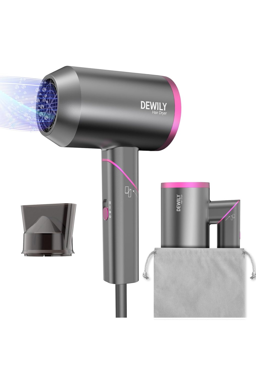 DEWILY skladací cestovný fén na vlasy, šedo rúžová - bez príslušenstva