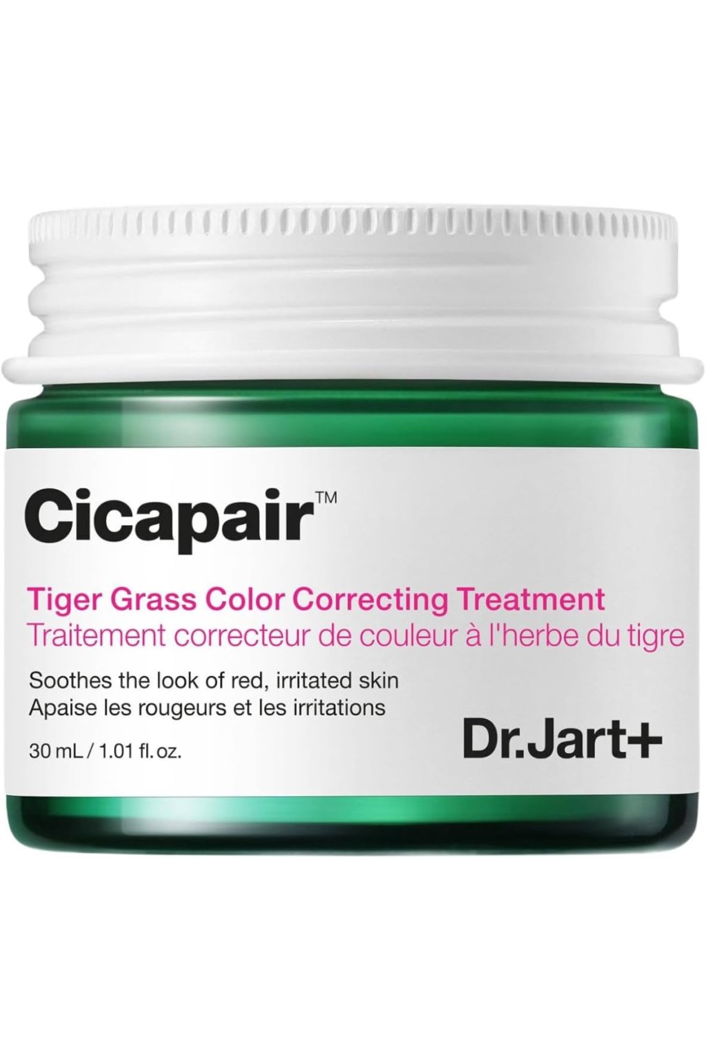 Dr.Jart+ Cicapair Tiger Grass Korekčný krém proti začervenaniu, 30 ml je upokojujúci pleťový krém navrhnutý na redukciu začervenania a zjednotenie tónu citlivej pleti. Jemná krémová textúra sa pri kontakte s pokožkou prispôsobuje jej odtieňu, neutralizuje začervenanie a zanecháva pleť prirodzene zjednotenú. Zloženie podporuje upokojenie podráždenia, posilňuje ochrannú bariéru a pomáha udržiavať hydratáciu pleti. Krém zároveň chráni pokožku pred vonkajšími vplyvmi a zanecháva ju hladkú, sviežu a komfortnú počas celého dňa. Vhodný je na každodenné použitie pre citlivú a reaktívnu pleť.