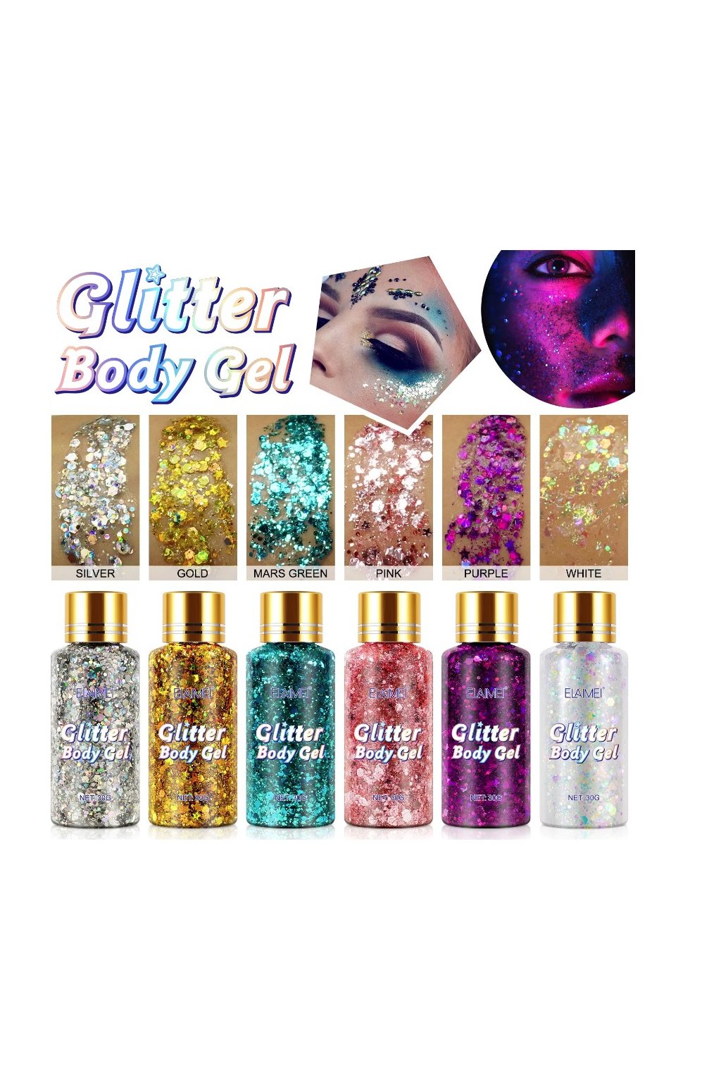 ELAIMEI Telový trblietavý gél, trblietky Holografický hrubý gél, 6x30ml