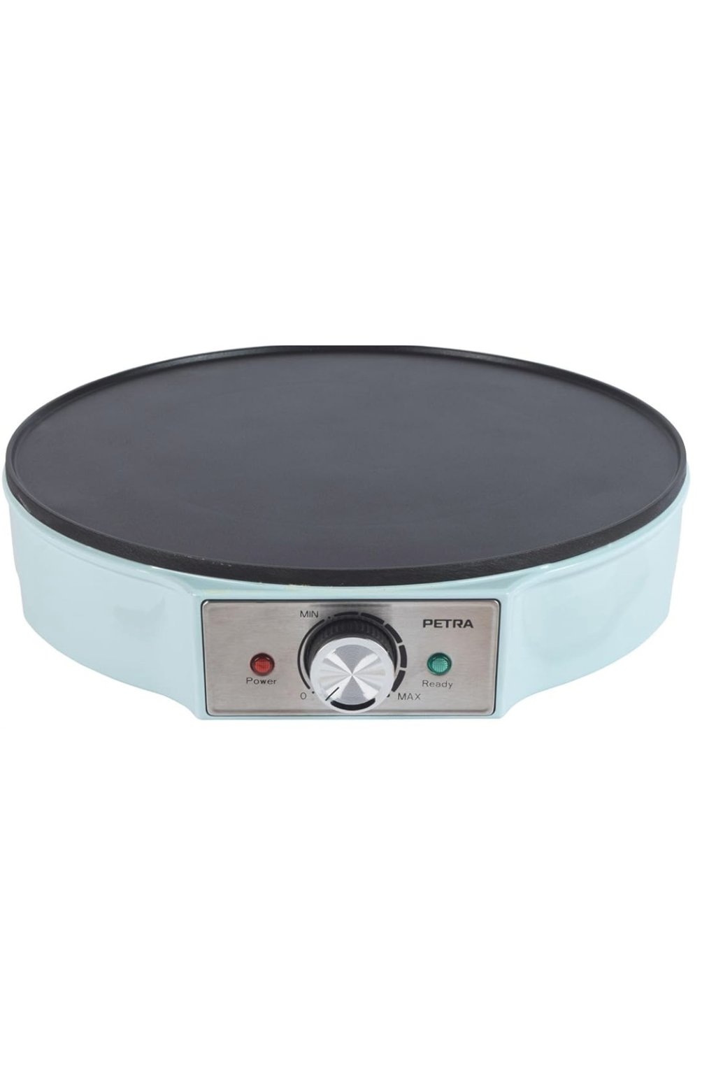 Elektrická platňa na palacinky Petra PT6223BLVDE Crepe Maker je ideálnym pomocníkom pre milovníkov domácich palaciniek, lievancov či tortill. Vďaka výkonu 1200 W a veľkej platni s priemerom 30 cm pripravíte dokonale tenké a rovnomerne prepečené palacinky za pár minút. Nepriľnavý povrch zaručuje, že sa cesto neprichytáva a čistenie je maximálne jednoduché. Praktický nastaviteľný regulátor teploty umožňuje presne nastaviť intenzitu ohrevu podľa typu cesta, zatiaľ čo rozprašovač cesta a lopatka zaisťujú rovnomerné rozotretie a jednoduchú manipuláciu. Elegantný modrý dizajn dodáva spotrebiču moderný vzhľad a hodí sa do každej kuchyne.