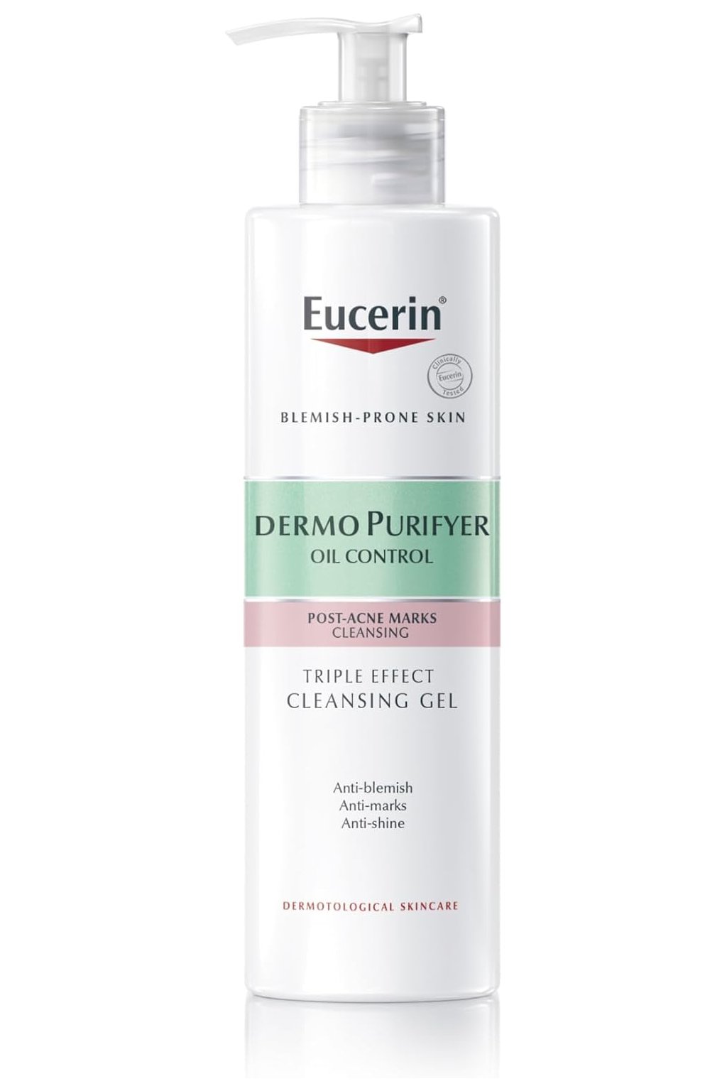 Eucerin DermoPurifyer Triple Effect Cleansing Gel je jemný, ale účinný čistiaci prostriedok na mastnú pleť. Redukuje vyrážky, pôsobí na stopy po akné a odstraňuje prebytočný maz, nečistoty a make-up. Pleť zanecháva čistú, sviežu a vyváženú.