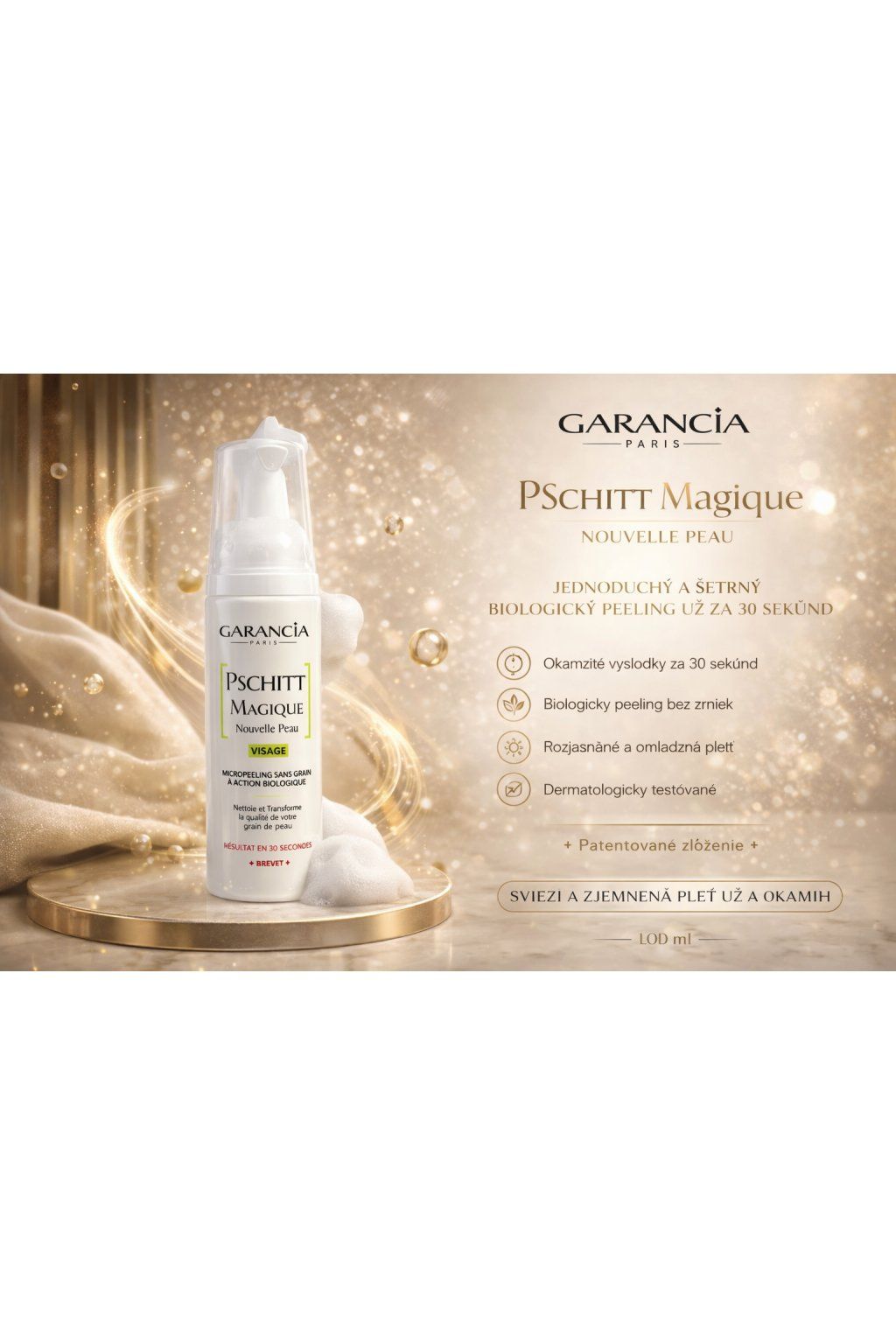 Garancia Pschitt Magique Nouvelle Peau je unikátny enzymatický peeling vo forme jemnej peny, ktorý okamžite zlepšuje kvalitu pleti už za 30 sekúnd. Bez abrazívnych častíc šetrne odstraňuje odumreté bunky, čistí póry a podporuje prirodzenú obnovu pokožky.