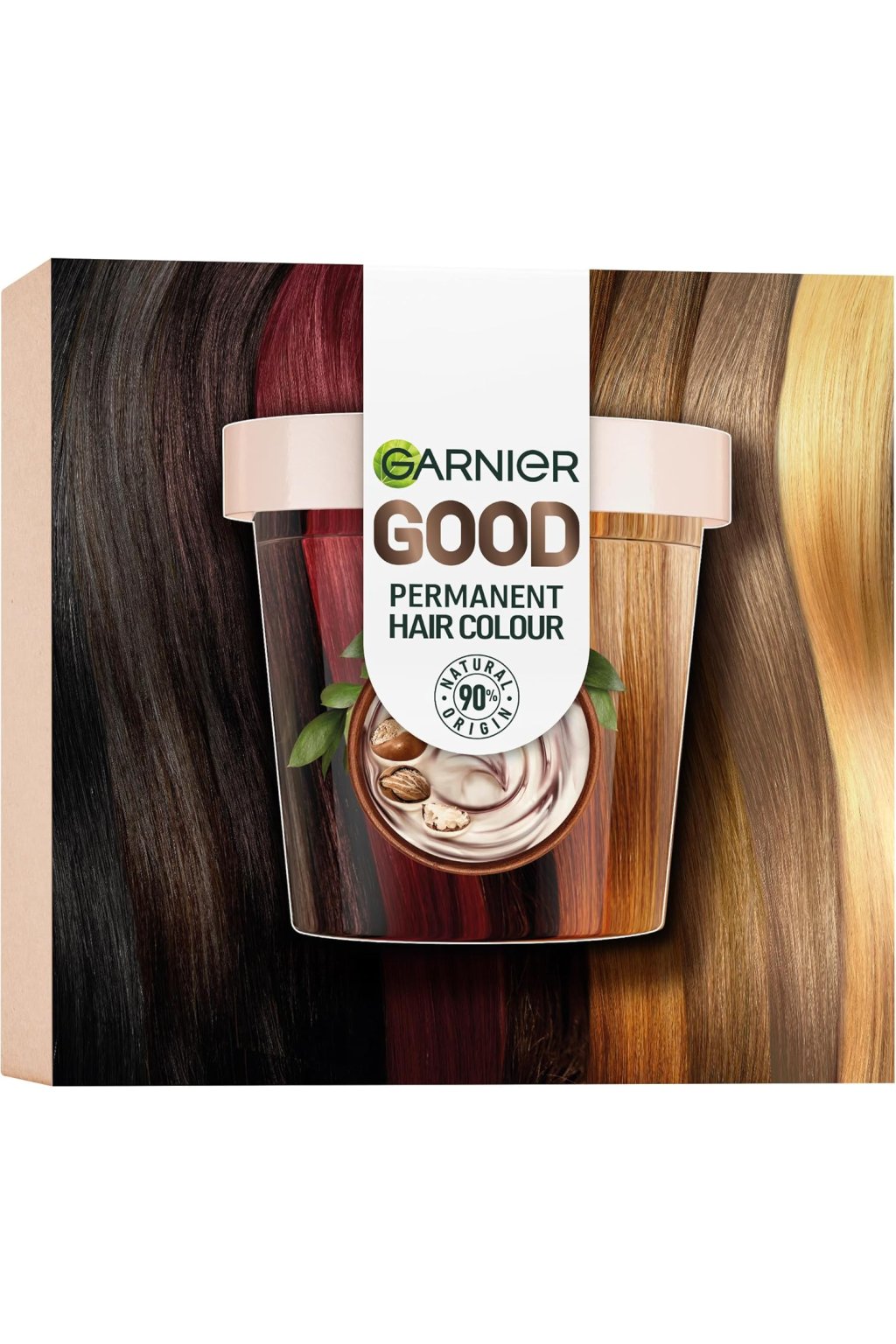 Garnier GOOD Permanent Hair Dye je trvalá farba na vlasy navrhnutá pre dosiahnutie prirodzeného a dlhotrvajúceho výsledku. Jej zloženie je obohatené o bambucké maslo, ktoré vlasy vyživuje a zanecháva ich hebké a zdravé. Nová technológia umožňuje ľahkú aplikáciu vďaka hustej, nekvapkajúcej textúre, ktorá sa nanáša ako maska. Farba poskytuje až 100% krytie šedín a vydrží až 8 týždňov.