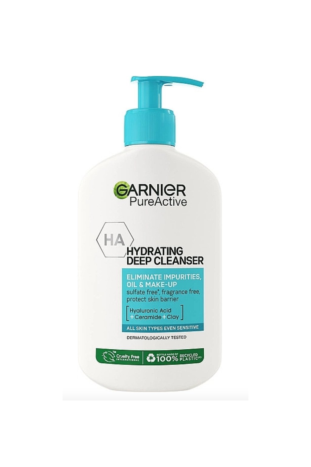Garnier Pure Active Hydrating Deep Cleanser je inovatívny čistiaci gél vytvorený pre potreby pleti so sklonom k akné, ktorá zároveň potrebuje hydratáciu a jemnú starostlivosť. Spojenie kyseliny hyalurónovej, ceramidov a ílu účinne odstraňuje prebytočný maz, make-up a nečistoty bez narušenia ochrannej bariéry pokožky. Jeho ľahká, nepenivá textúra čistí do hĺbky, zanecháva pleť sviežu, vláčnu a bez pocitu vysušenia. Ideálny pre každodenné použitie aj pre citlivú pokožku. Gél obnovuje rovnováhu hydratácie, redukuje tvorbu vyrážok a zlepšuje celkový vzhľad pleti. Dermatologicky testovaný a 100 % vegánsky.