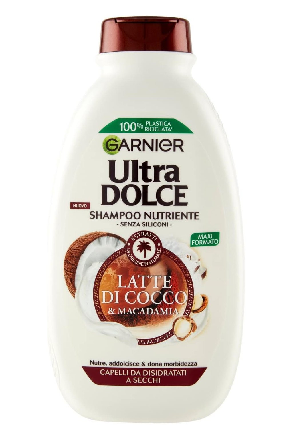 Garnier Ultra Dolce šampón Latte di Cocco 300 ml je jemný šampón obohatený o výťažok z kokosu a ryžového krému, ktorý poskytuje výživu a hebkosť vlasom od korienkov až po končeky. Jeho krémové zloženie šetrne čistí pokožku hlavy a vlasy bez toho, aby ich zaťažovalo, a zároveň ich zanecháva jemné, ľahké a prirodzene lesklé. Vďaka hydratačným vlastnostiam kokosu a vyživujúcemu efektu ryžového krému je tento šampón ideálny na každodenné použitie pre normálne až suché vlasy. Vlasy zostávajú hebké, voňavé a ľahko upraviteľné.