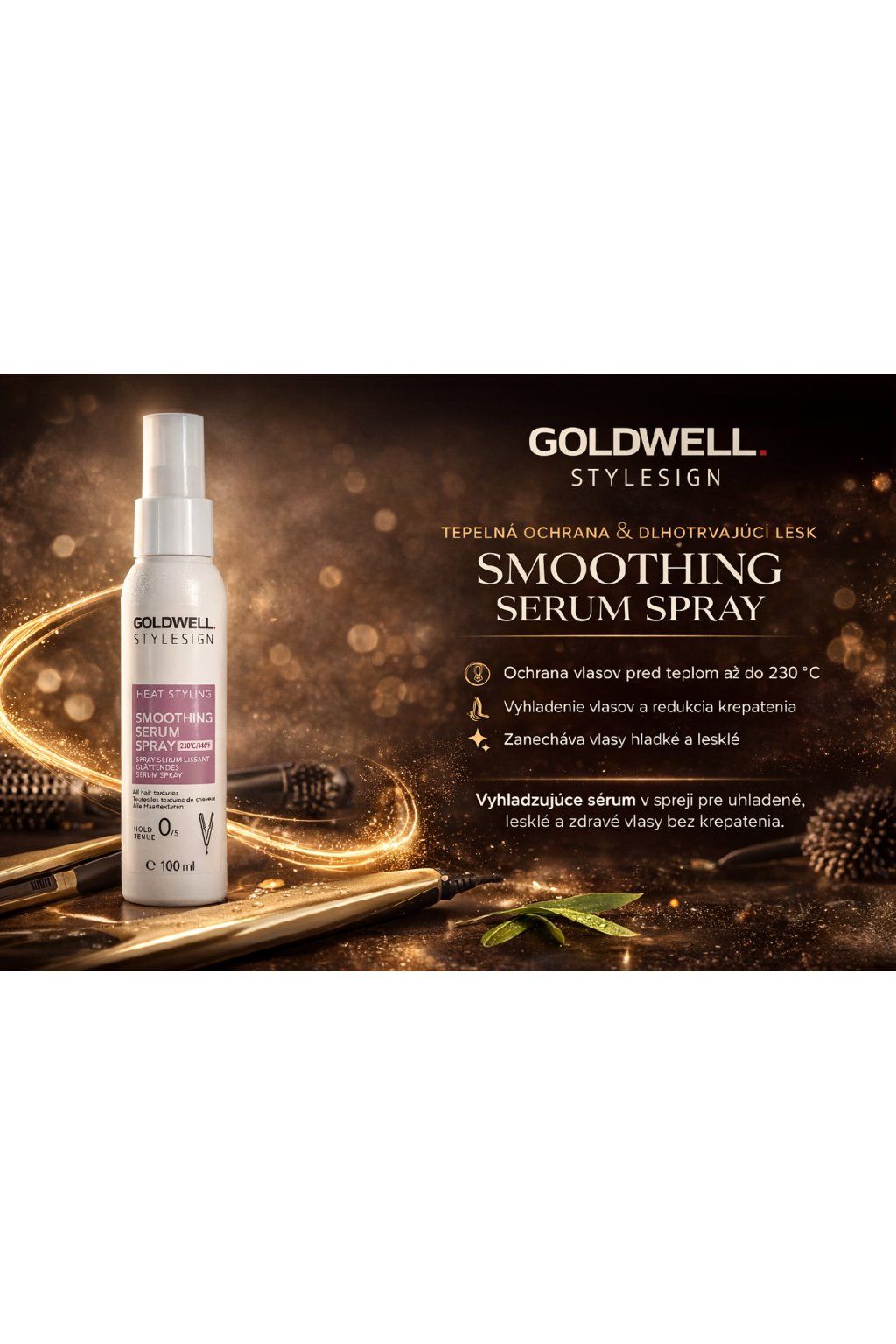 Vyhladzujúce sérum v spreji Goldwell StyleSign je ideálne riešenie pre ochranu vlasov pri tepelnom stylingu. Poskytuje okamžitý uhladzujúci efekt, znižuje krepatenie a zároveň chráni vlasy pred poškodením teplom až do 230 °C.