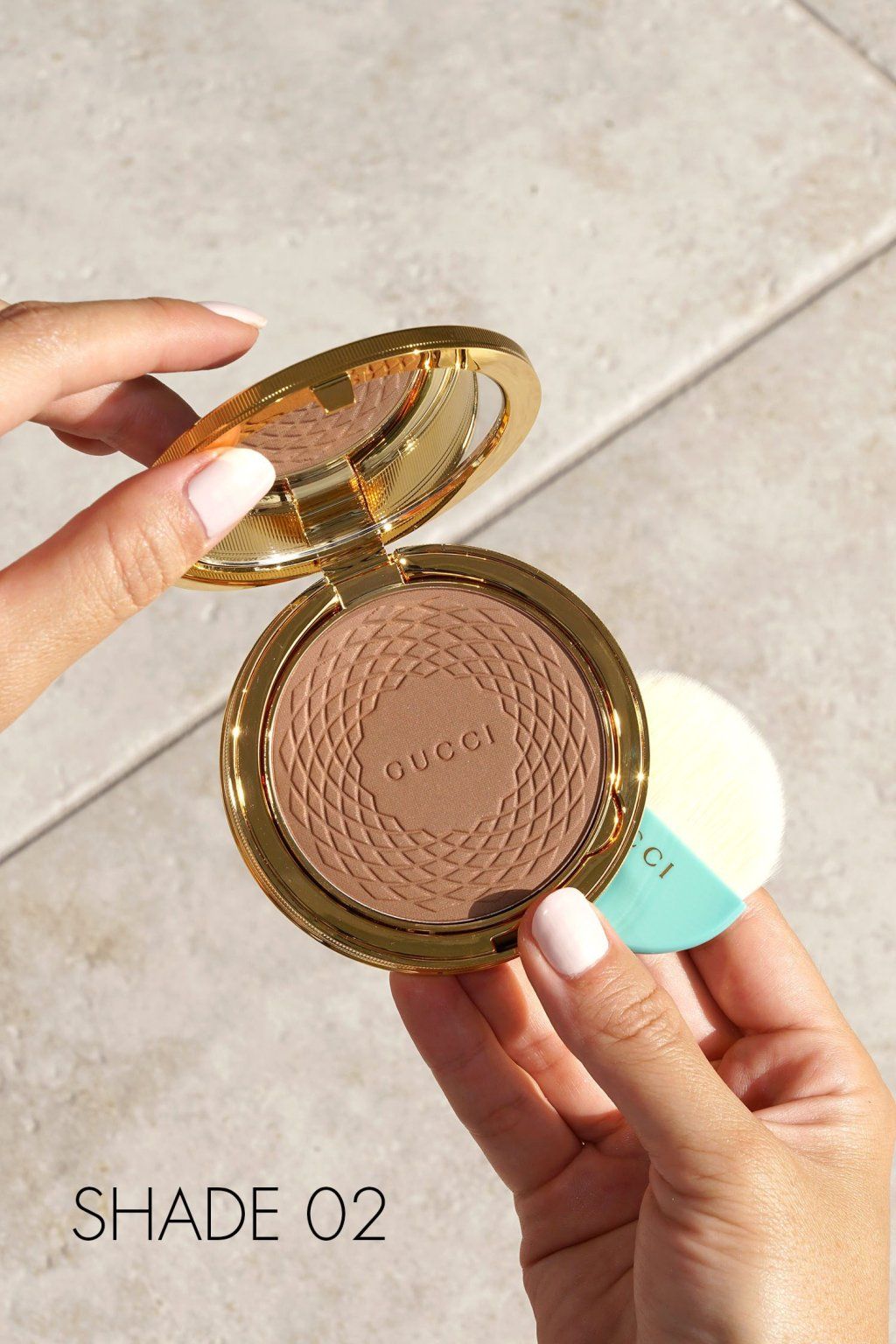 Gucci Beauty Poudre de Beauté Éclat Soleil bronzér 12 g je ideálny pre prirodzene opálený a rozjasnený vzhľad pleti a pomáha zvýrazniť kontúry tváre s jemným „sun-kissed“ efektom. Jeho hodvábna, jemne krémová púdrová textúra sa ľahko nanáša, dokonale splýva s pokožkou a zanecháva ju hladkú, zjednotenú a prirodzene žiarivú. Pomáha opticky vyhladzovať jemné linky a póry vďaka soft-focus efektu a zároveň poskytuje dlhotrvajúci komfort počas celého dňa. Vďaka možnosti vrstvenia umožňuje dosiahnuť jemný aj intenzívnejší efekt bez mapovania. Tento bronzér je vhodný na každodenné líčenie aj zvýraznenie kontúr a podporuje zdravý, svieži a upravený vzhľad pleti.