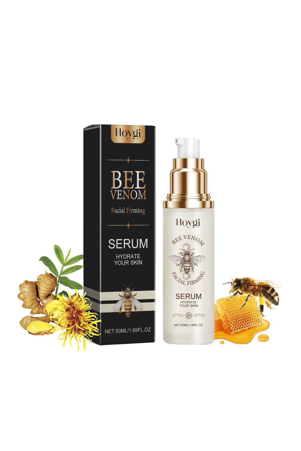 HOYGI Prírodné Organické Hydratačné Sérum na Tvár s Včelím Jedom, Spevňujúce, Proti Vráskam a Zúžujúce Póry 50ml je špičkový produkt, ktorý kombinuje silu prírody na zlepšenie vzhľadu pleti.