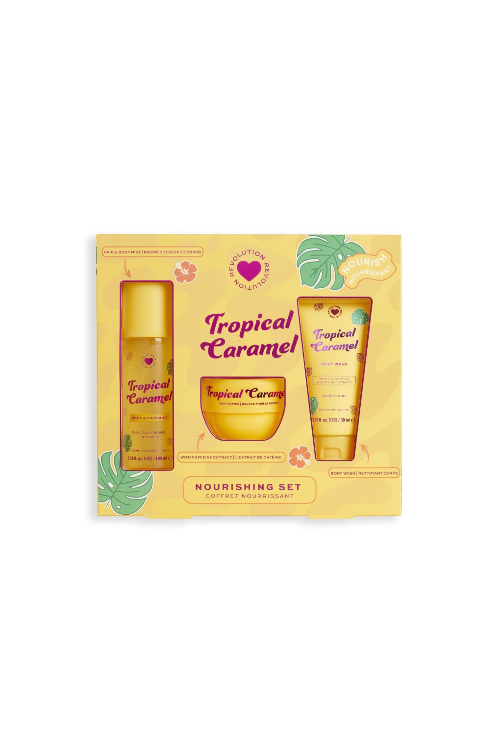 I Heart Revolution Tropical Caramel darčeková sada na telo je lákavá kolekcia telovej starostlivosti, ktorá kombinuje tropické a sladké tóny karamelu. Obsahuje telové mlieko, sprchový gél a ďalšie produkty pre kompletnú dennú rutinu starostlivosti o pokožku. Ideálna ako darček alebo wellness sada pre milovníkov sladkých aromatických vôní.