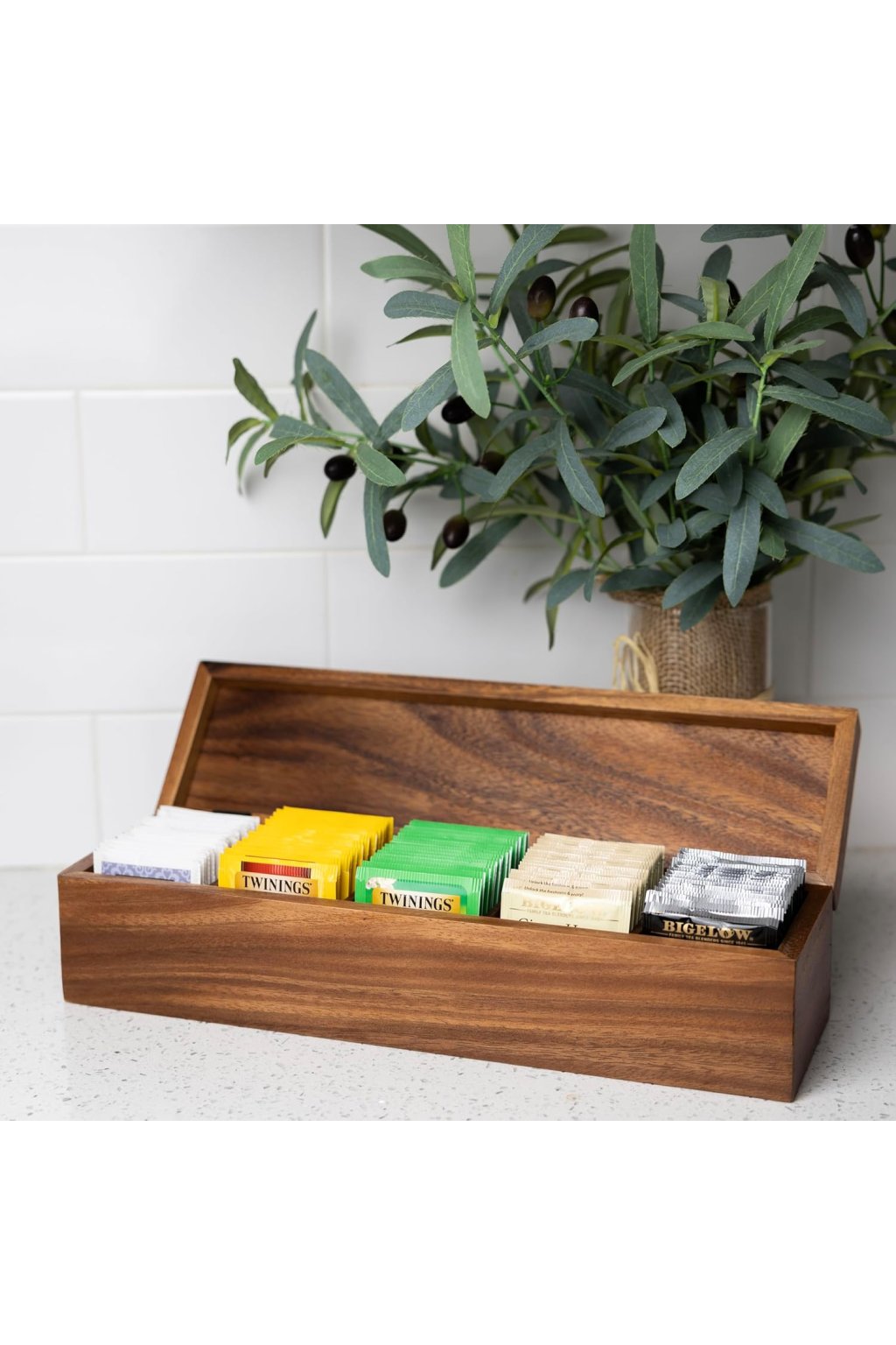 Použitie: Uložte svoje obľúbené čaje do priehradiek, zatvorte veko a vychutnajte si poriadok aj štýl pri každom čajovom rituáli.