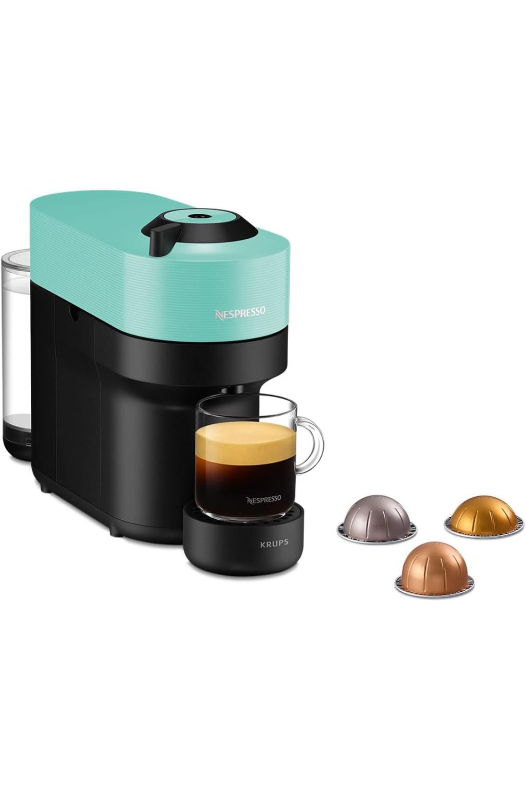 Kávovar Nespresso Krups Vertuo Pop XN9204K v elegantnej farbe Aqua Mint prináša moderný spôsob prípravy kávy s použitím systému Vertuo, ktorý zaručuje dokonalú chuť a arómu každej šálky. Vďaka inovatívnej technológii centrifúzneho extrakčného systému dokáže kávovar rozpoznať typ kapsuly a automaticky prispôsobiť teplotu, objem vody a rýchlosť otáčania pre dokonalý výsledok. Kompaktný dizajn s nádržou na vodu 0,56 l šetrí miesto a hodí sa aj do menších kuchýň. Kávovar je vyrobený z 35 % recyklovaných plastov a má automatický úsporný režim, ktorý sa aktivuje po 2 minútach nečinnosti.