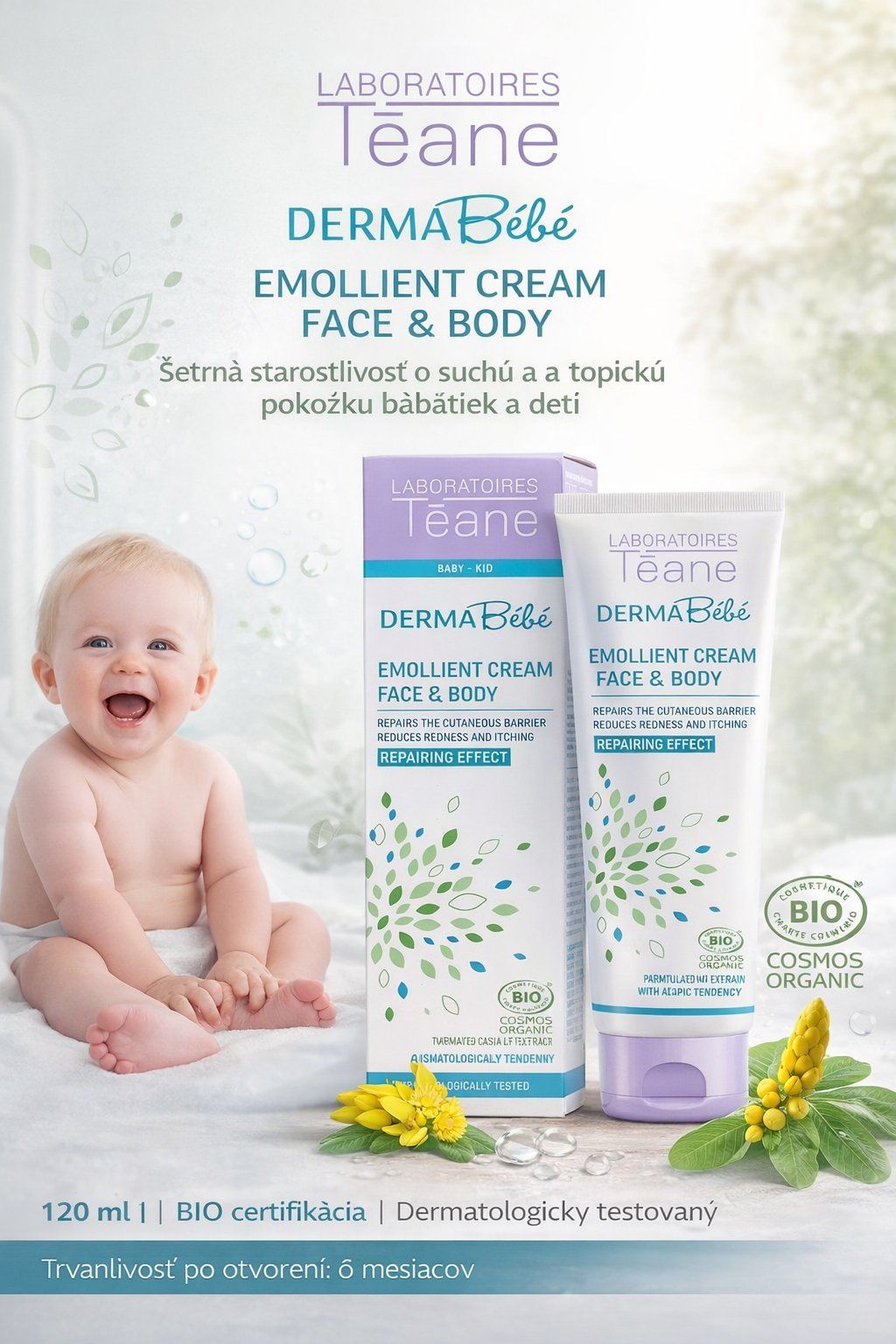 Jemná a účinná starostlivosť o citlivú detskú pokožku s atopickým sklonom. Laboratoires Téane Dermabébé Emollient Cream je špeciálne vyvinutý krém pre bábätká a deti, ktorý pomáha obnovovať kožnú bariéru, zmierňuje podráždenie a poskytuje intenzívnu hydratáciu.