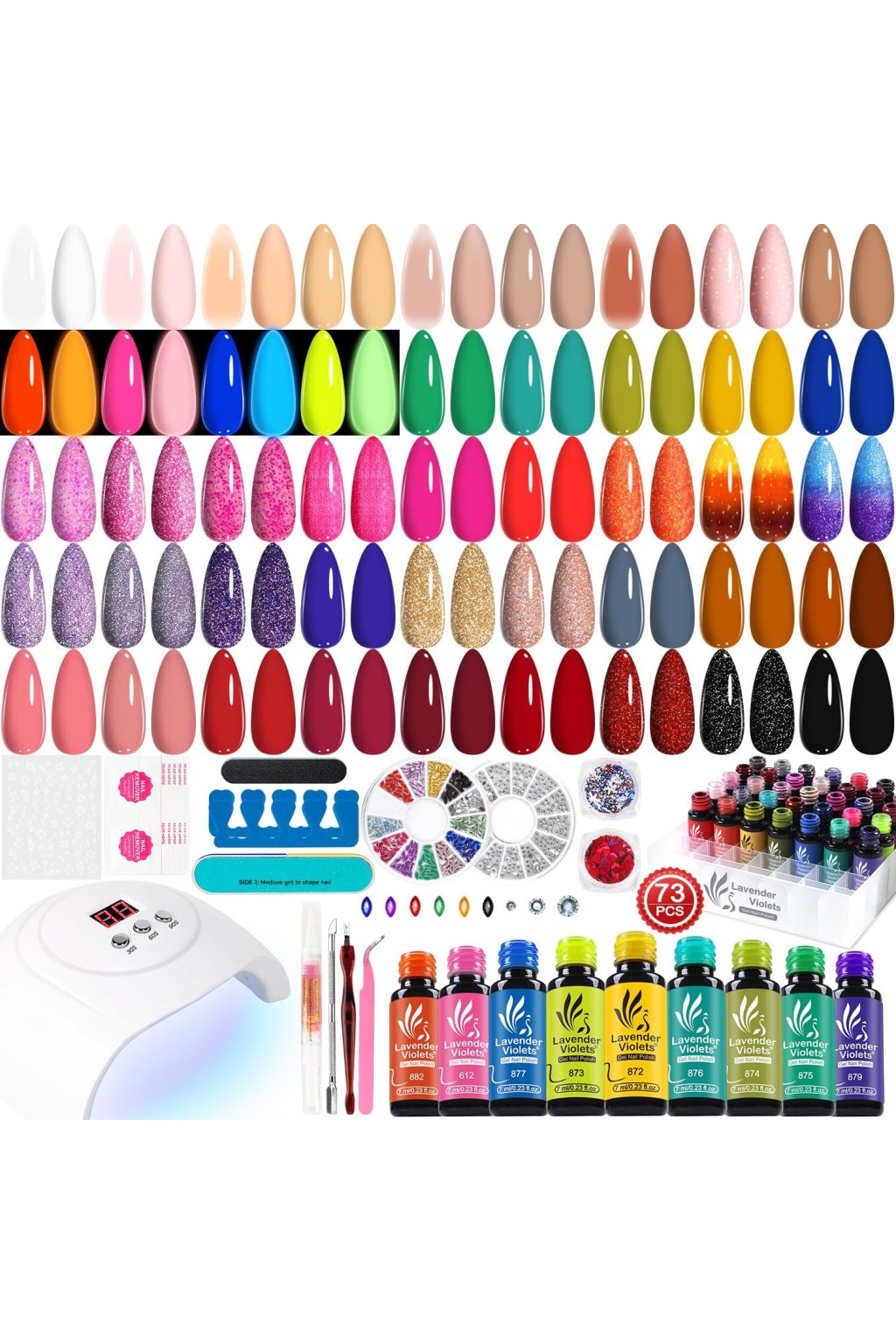 Lavender Violets sada na gélové nechty 73 ks s UV lampou, 45 + 4 farieb- LA00-chýba pilník