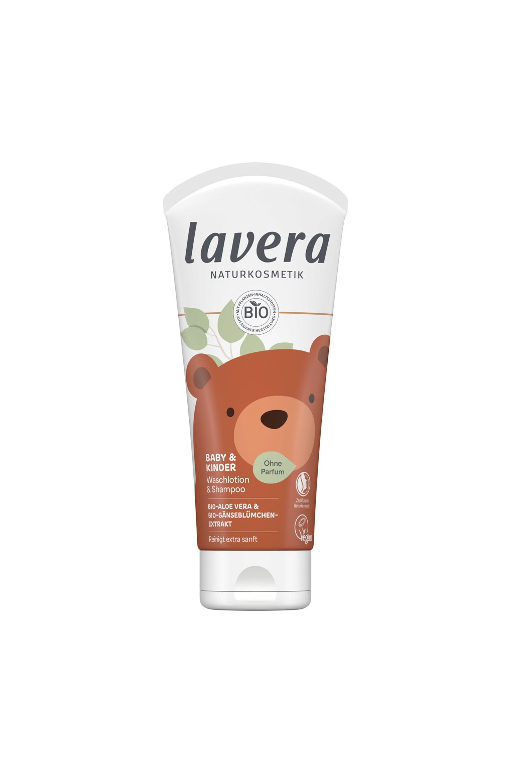 Lavera Baby & Kinder WaschLotion & Shampoo je jemné mlieko na umývanie a šampón v jednom, vytvorené špeciálne pre citlivú pokožku bábätiek a detí.
