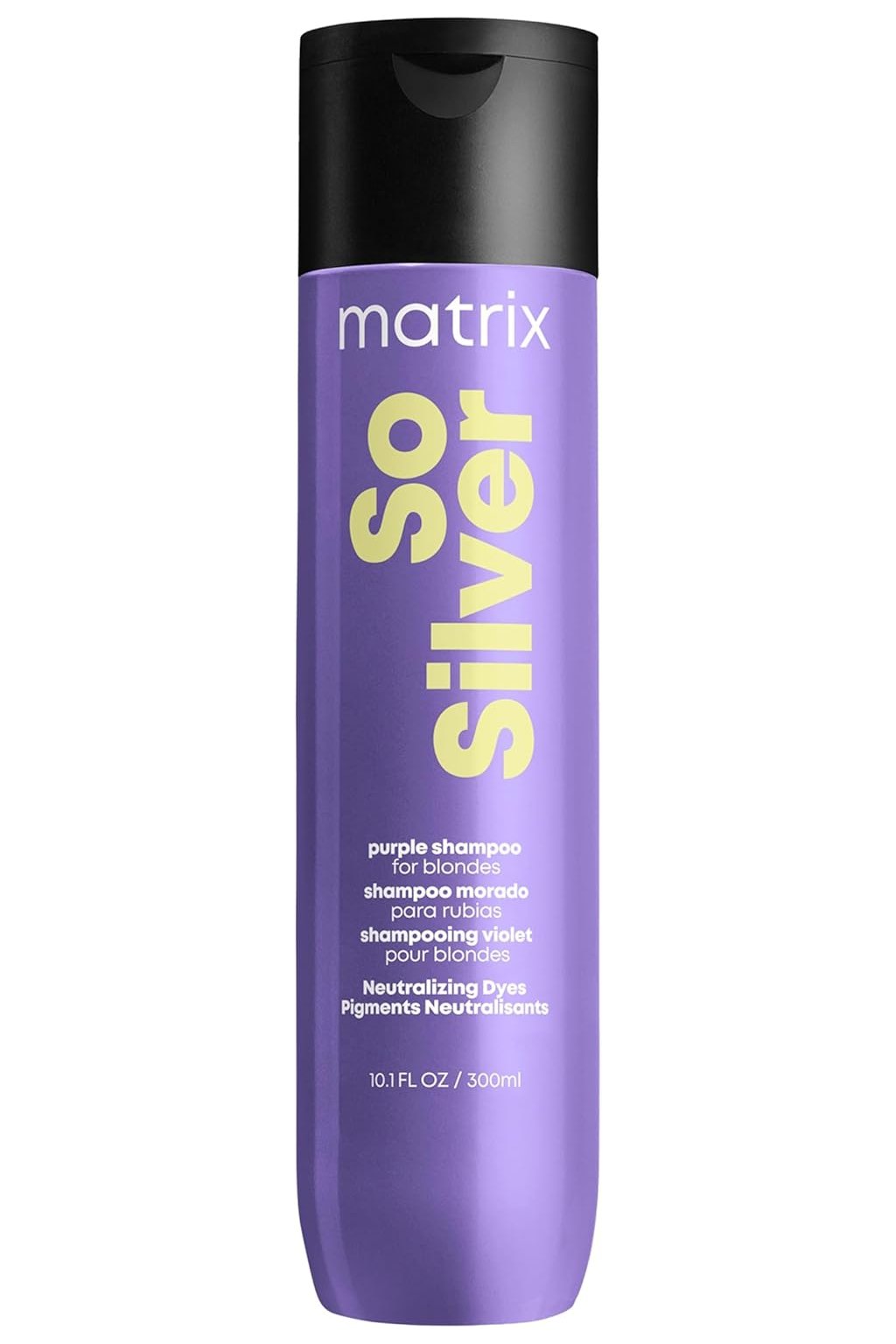 Matrix šampón So Silver 300 ml je profesionálny šampón určený pre blond, šedivé a strieborné vlasy. Jeho špeciálne fialové pigmenty neutralizujú neželané žlté a medené tóny, čím zvýrazňujú chladné odtiene a dodávajú vlasom svieži a žiarivý vzhľad. Šampón jemne čistí, odstraňuje nečistoty aj zvyšky stylingových produktov a zároveň zanecháva vlasy hebké a lesklé. Pravidelné používanie pomáha udržiavať čistý a elegantný farebný efekt bez zažltnutia. Je ideálny pre prírodné aj farbené vlasy a poskytuje salónny výsledok priamo doma.