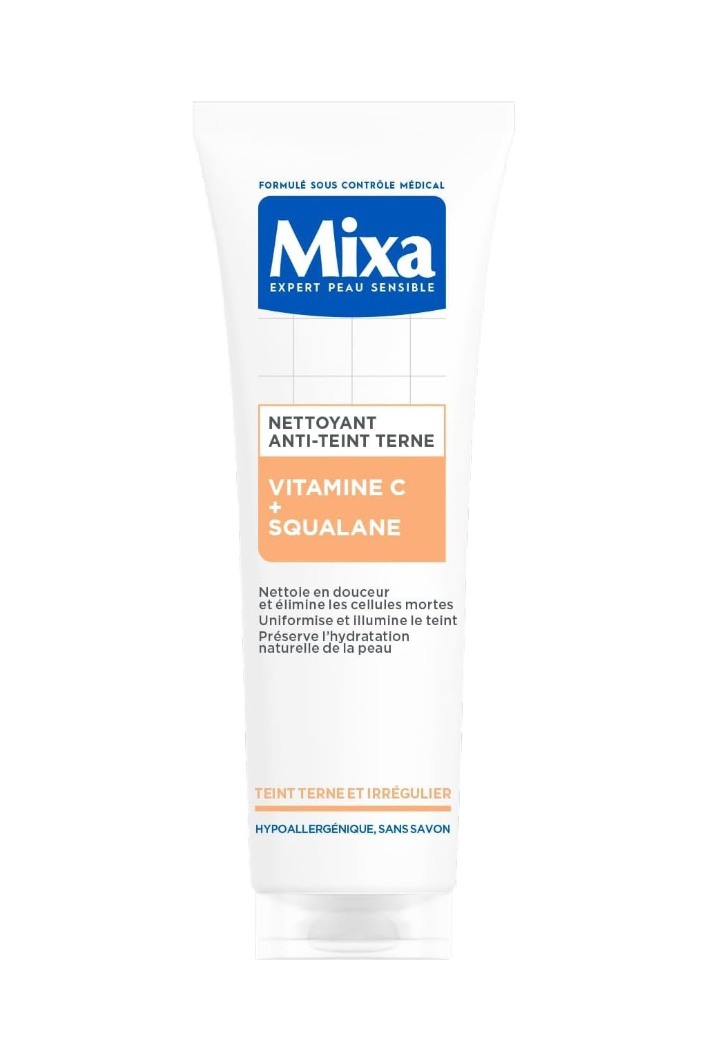 Čistiaci prostriedok na matnú a nerovnomernú pleť s duom doplnkových aktívnych zložiek: vitamínom C pre rozjasnenie pleti a skvalánom pre ochranu kožnej bariéry.
