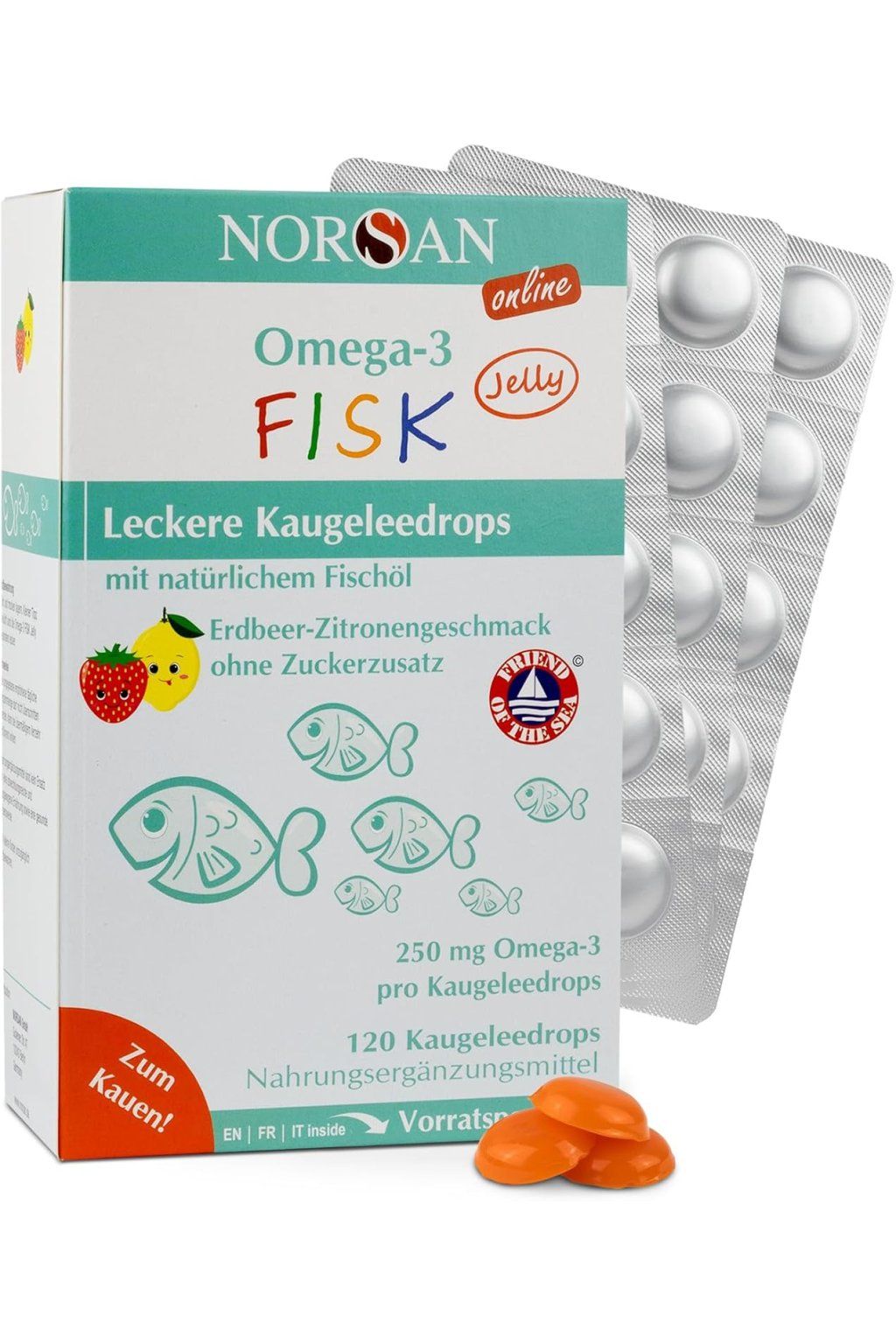 Premium Omega 3 špeciálne odporúčané pre deti, želé vyrobené z rybieho oleja bohatého na kyselinu eikosapentaénovú (EPA), najmä pre deti, sú 100% prírodným spôsobom, ako splniť dennú potrebu 100 mg - 250 mg DHA (kyselina dokosahexaenová).