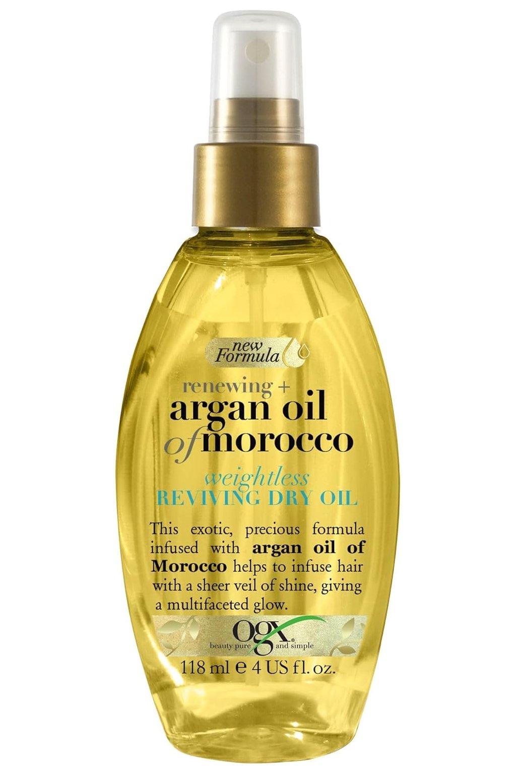 OGX vlasový olej, obnovujúci + arganový olej z Maroka, ľahký revitalizačný suchý olej, sprej, nové zloženie, 118 ml je luxusný vlasový olej určený na obnovu, výživu a dodanie lesku vlasom bez ich zaťaženia. Obsahuje arganový olej z Maroka, ktorý posilňuje a vyživuje vlasy od korienkov až po končeky, zanecháva ich hladké, jemné a ľahko rozčesateľné. Ľahká suchá textúra oleja sa rýchlo vstrebáva, nezanecháva mastný film a zanecháva vlasy prirodzene lesklé, pružné a revitalizované. Sprejová aplikácia umožňuje jednoduché a rovnomerné nanesenie, vhodné pre všetky typy vlasov. OGX vlasový olej je ideálny pre každodenné použitie alebo ako finálny krok pri stylingu, ktorý dodáva vlasom hebkosť, ochranu proti krepateniu a dlhotrvajúcu vitalitu. Nové zloženie zaisťuje ešte lepšie rozptýlenie oleja a zachovanie jeho výživných vlastností.
