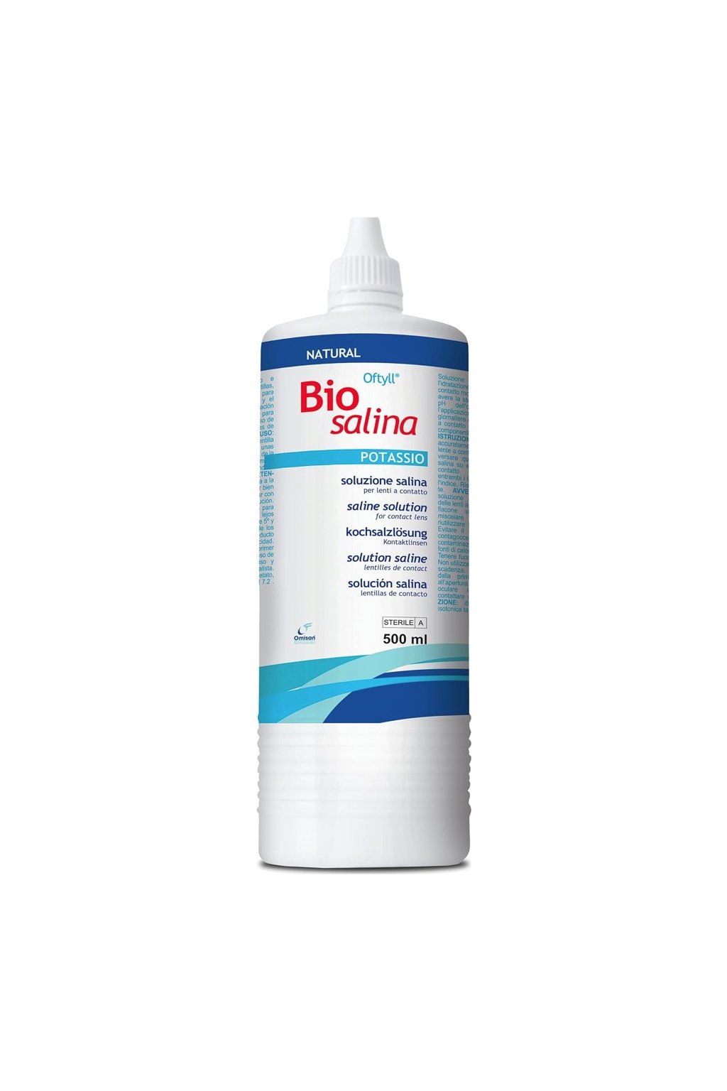 Omisan Oftyll Biosalina – Oplachovanie a hydratácia kontaktných šošoviek 500 ml je jemný fyziologický roztok určený na oplachovanie a hydratáciu všetkých typov mäkkých a tvrdých kontaktných šošoviek, vrátane jednodňových. Vďaka inovatívnemu a vysoko biokompatibilnému složeniu s obsahom draslíka je vhodný aj pre citlivé oči. Tento produkt je kompatibilný s homeopatickými liekmi a neobsahuje konzervačné látky ako benzalkóniumchlorid, chlórhexidín či thimerosal. Má pH 7,2, čo je blízke fyziologickému pH oka, čím zaisťuje šetrnú starostlivosť pri každodennom používaní.