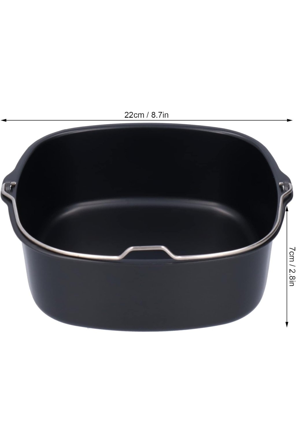 Táto forma na pečenie je špeciálne navrhnutá pre použitie v air fryer fritézach modelov HD9925, HD9860, HD9905-01. S priemerom 22 cm ide ideálne do koša fritézy, pričom ponecháva dostatočný priestor pre cirkuláciu vzduchu. Vyrobená z potravinárskeho nepriľnavého materiálu, odolná vysokým teplotám, s rovnomerným rozvodom tepla. Vďaka hladkému povrchu sa koláče jednoducho vyberajú, bez zachytávania okrajov. Forma je ľahká, praktická a vhodná do umývačky riadu (horný kôš), čo zjednodušuje údržbu a čistenie. Je vhodná nielen na pečenie koláčov, ale aj na slanšie príklady – lasagne, zeleninové zapekanky alebo malé quichy. Vďaka kompaktnej konštrukcii nebráni prúdeniu horúceho vzduchu, čo zachová efektivitu pečenia. Tvarovo presne sadne do kompatibilných modelov fritéz, čím sa minimalizuje riziko kontaktu so stenami a nepravidelného pečenia. Elegantný dizajn v čiernej nepriľnavej úprave ladí s povrchom kôšov fritéz.