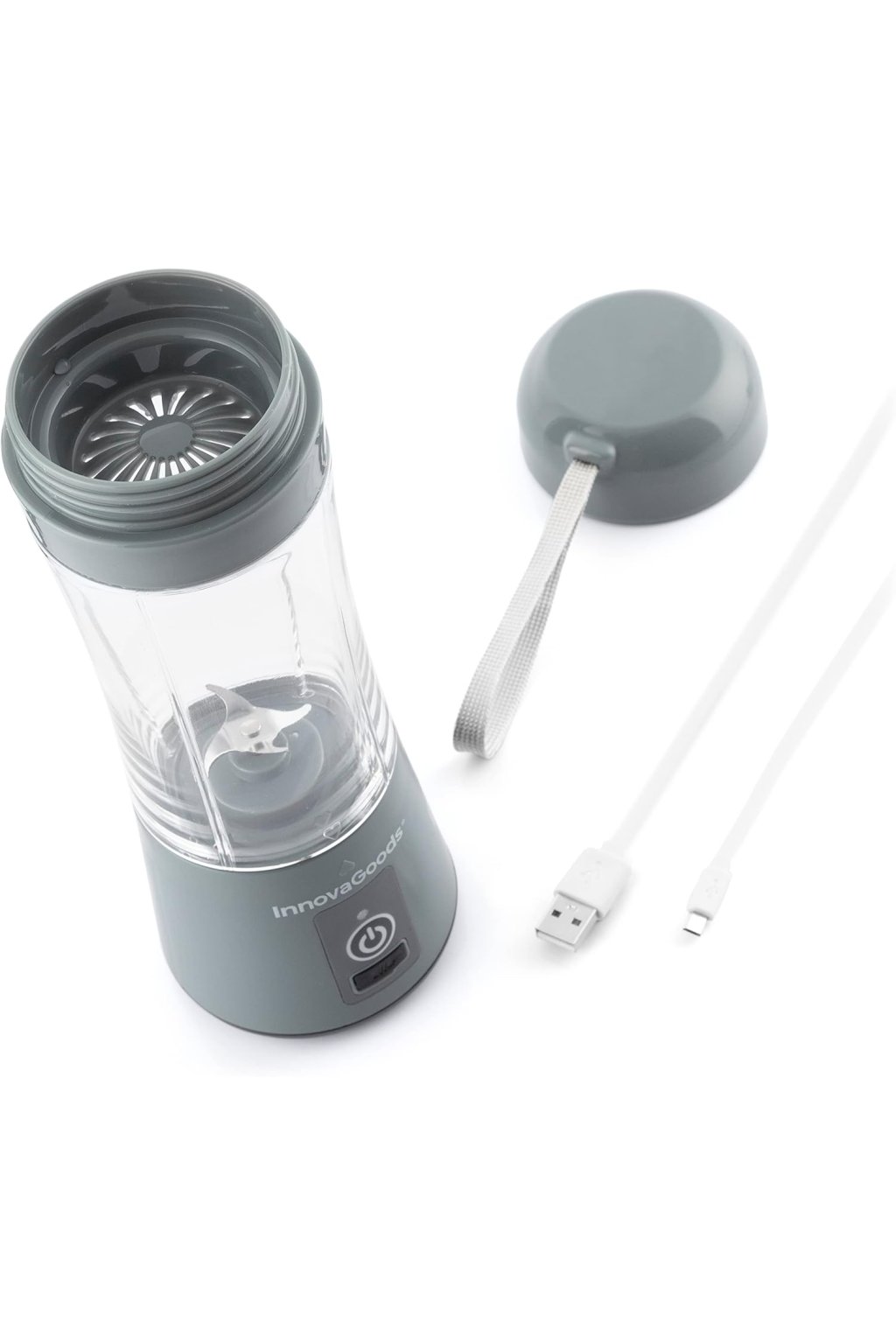 Prenosný mixér InnovaGoods® s objemom 380 ml a výkonom 17 000 ot./min umožňuje rýchlu a pohodlnú prípravu smoothie, detoxikačných nápojov a čerstvých štiav kdekoľvek a kedykoľvek.