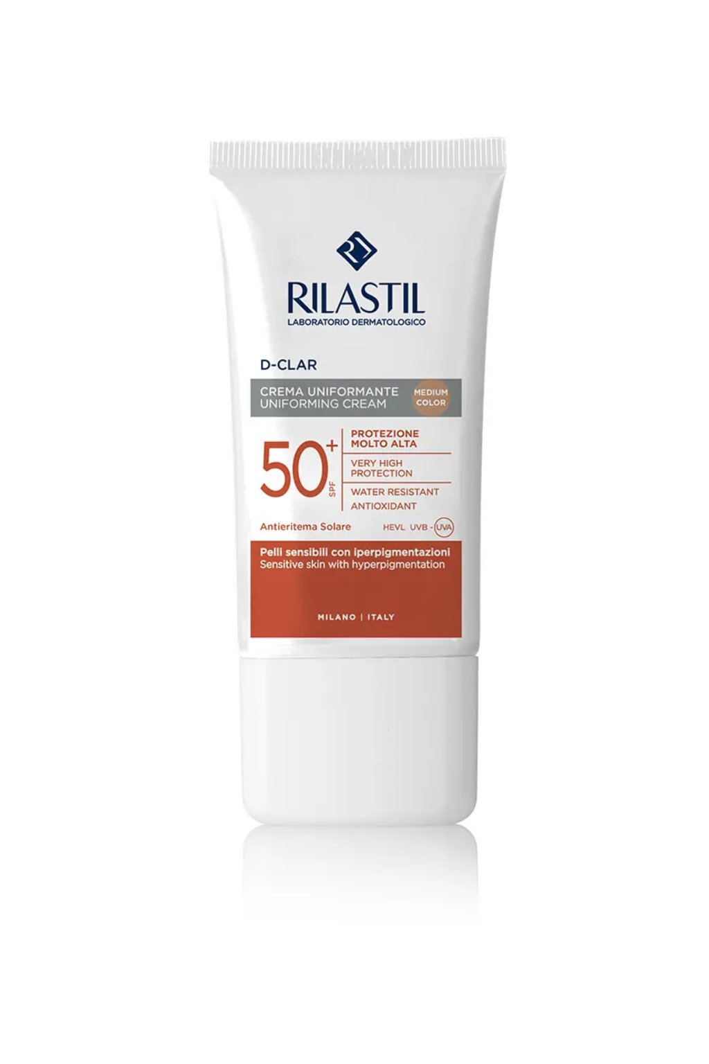 Rilastil Sun System D-Clar Uniforming Cream SPF 50+ je tónovaný fotoochranný krém navrhnutý pre citlivú pleť so sklonom k hyperpigmentáciám. Poskytuje veľmi vysokú ochranu pred UVA a UVB žiarením a zároveň pomáha vizuálne zjednocovať tón pleti. Ľahká krémová textúra sa rovnomerne rozotiera, nezanecháva biely film a dodáva pleti prirodzený, zdravý vzhľad. Pravidelné používanie podporuje prevenciu vzniku tmavých škvŕn spôsobených slnkom a pomáha chrániť pleť pred oxidačným stresom. Vhodný na každodenné použitie aj pre citlivú a reaktívnu pokožku.