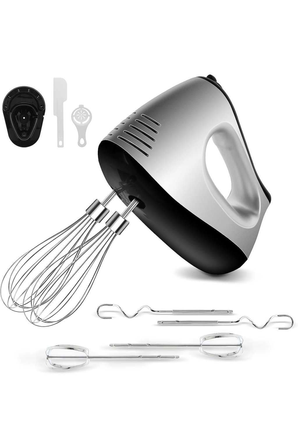 6 v 1 sada príslušenstva – metlička, háky na miesenie a miešadlo na cesto.