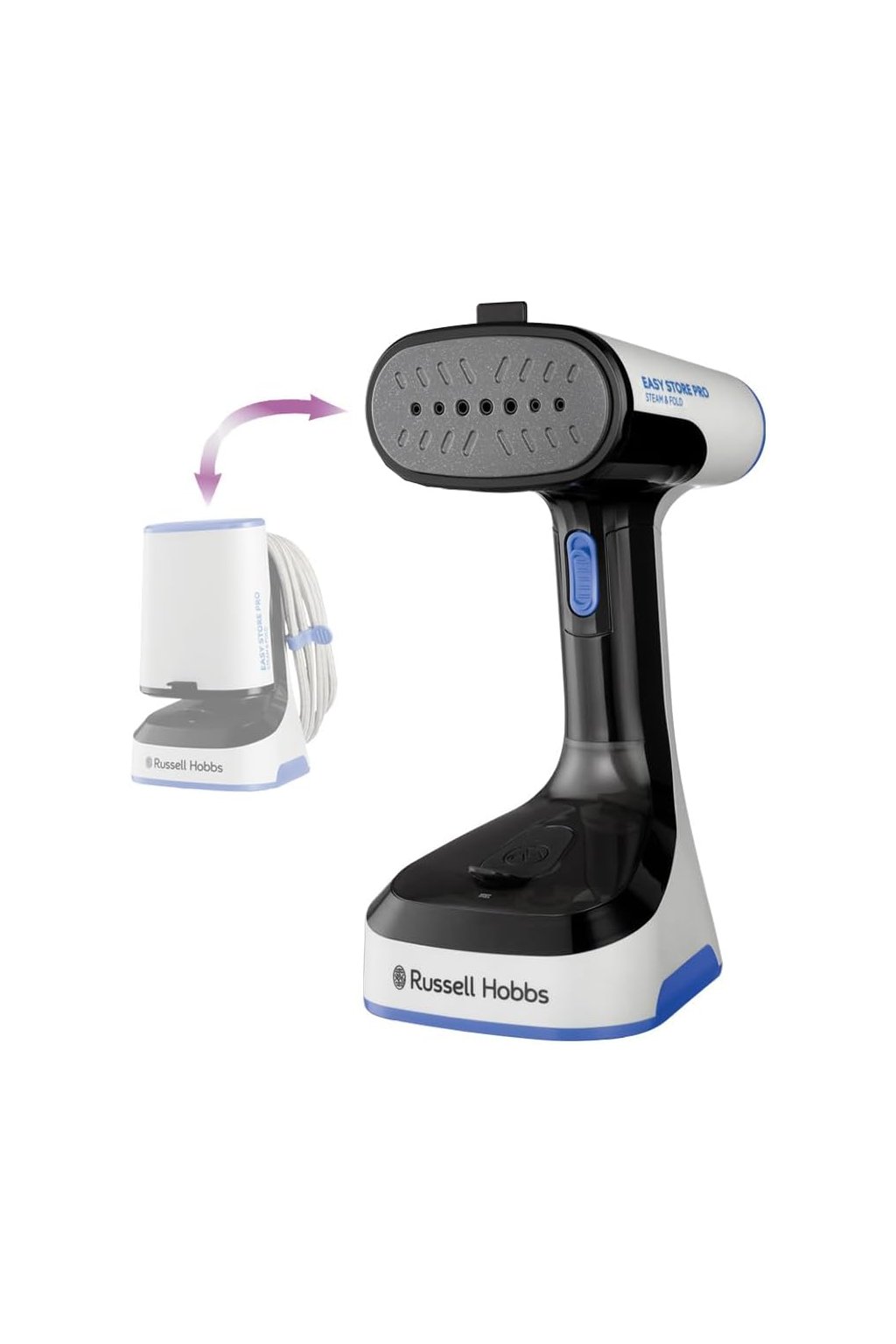 Naparovač odevov Russell Hobbs Easy Store Steam and Fold uľahčuje naparovanie a dezinfekciu látok doma aj na cestách. Zahreje sa za iba 45 sekúnd a uvoľní 20 g pary, čím vyhladí záhyby, dezinfikuje povrchy a zabije až 99,9 % baktérií a vírusov už za 60 sekúnd.