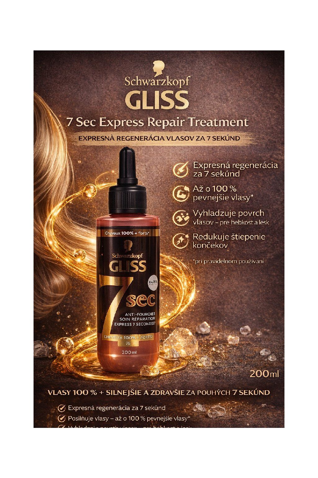 Doprajte svojim vlasom okamžitú regeneráciu s revolučnou kúrou GLISS 7 Sec Express Repair Treatment od Schwarzkopf. Táto intenzívna starostlivosť obnovuje poškodené vlasy už za 7 sekúnd, zanecháva ich hladké, silné a viditeľne zdravšie.