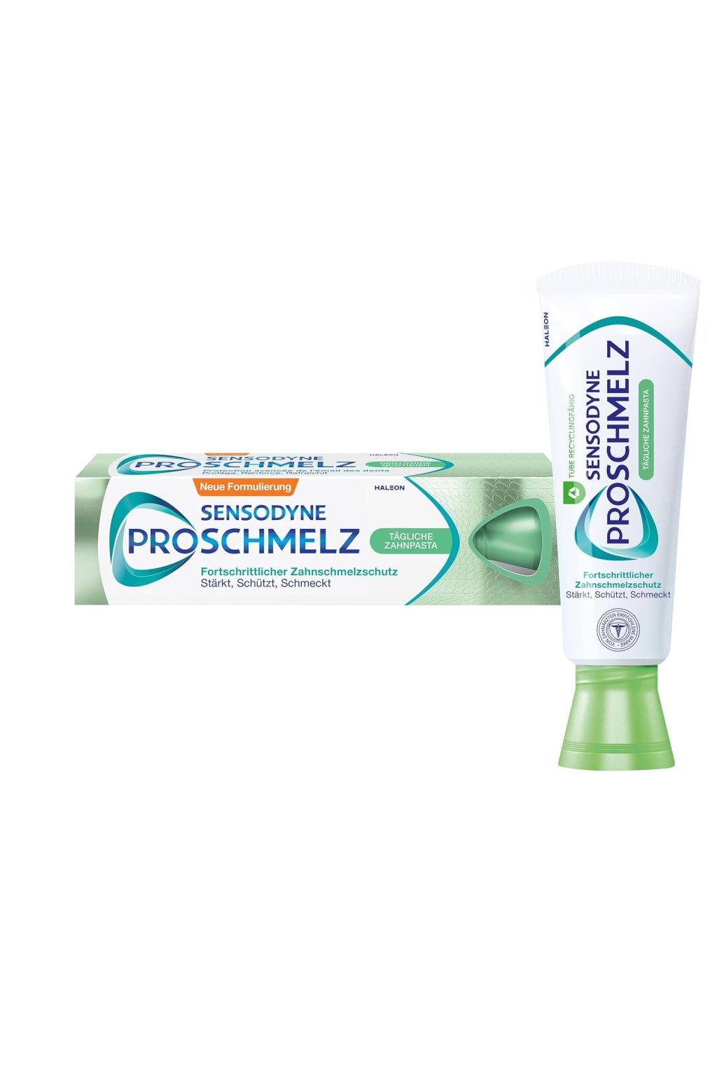 SENSODYNE ProSchmelz Daily – pokročilá ochrana zubnej skloviny 75 ml prináša každodennú starostlivosť pre citlivé zuby, ktoré čelia agresívnym kyselinám z potravy a nápojov. Inovatívna technológia so zmesou minerálov remineralizuje a spevňuje oslabenú sklovinu, čím obnovuje jej prirodzenú ochrannú bariéru. Jemné abrazíva účinne odstraňujú povrchové škvrny bez zvýšenia citlivosti, zatiaľ čo príjemná svieža príchuť zabezpečuje svieži dych po celej deň. Pasta je bez agresívnych prísad, je kompatibilná s citlivými ďasnami a je vhodná na každodenné používanie – ráno aj večer.