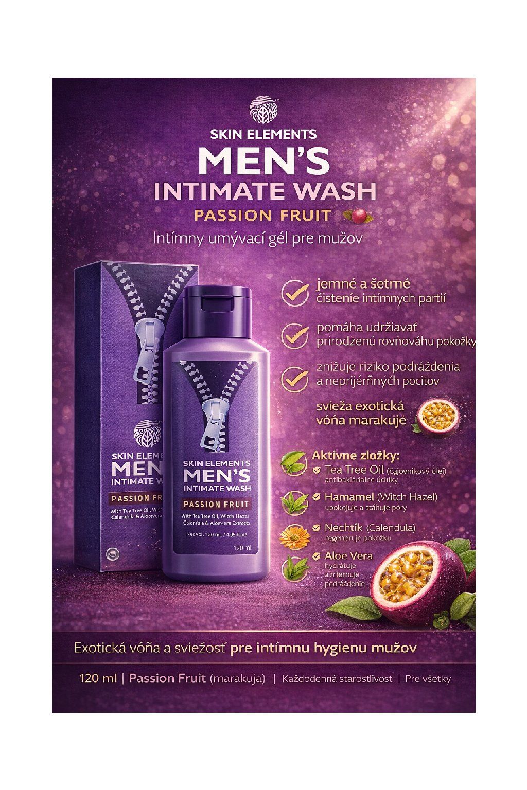 Skin Elements Men’s Intimate Wash Passion Fruit 120 ml – intímny umývací gél pre mužov