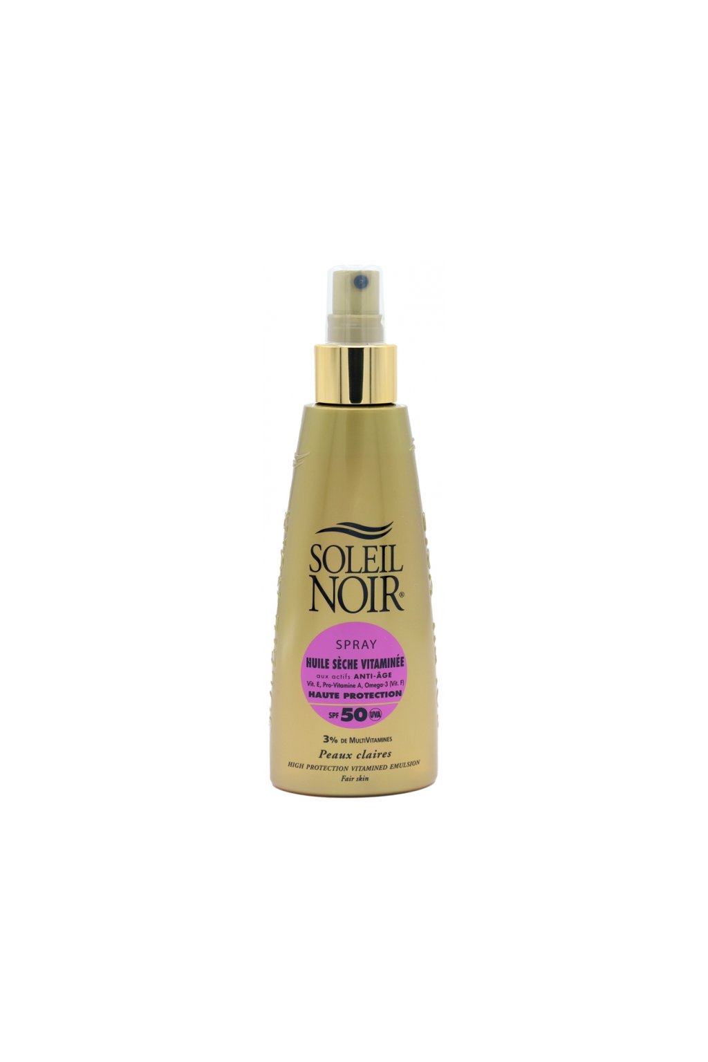 Soleil Noir vitamínový suchý olej SPF50 sprej 150 ml je luxusný opaľovací prípravok, ktorý kombinuje vysokú ochranu proti UV žiareniu s intenzívnou výživou pokožky. Je špeciálne navrhnutý pre svetlú pleť.
