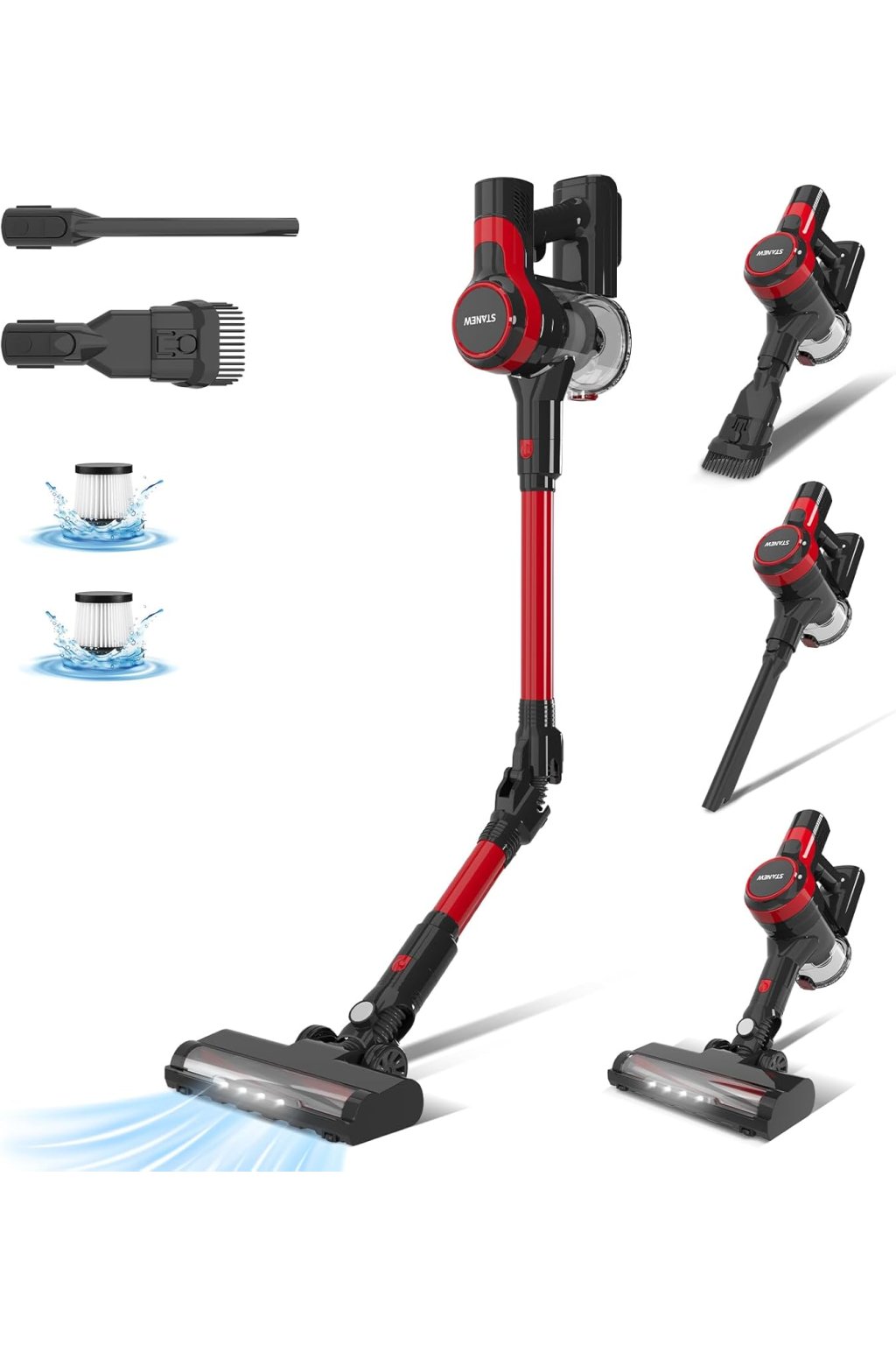 Silný sací výkon 33 kPa + bezkefový motor s výkonom 320 W: Rozlúčte sa s odolnými nečistotami a zvieracími chlpmi! Náš akumulátorový vysávač je vybavený bezkefovým motorom, ktorý v porovnaní s kefovým motorom poskytuje väčší sací výkon, nižšiu hlučnosť a dlhšiu životnosť. Tento výkonný akumulátorový vysávač ľahko odstraňuje nečistoty, prach a zvyšky jedla, takže vaše povrchy zostanú bez poskvrny.