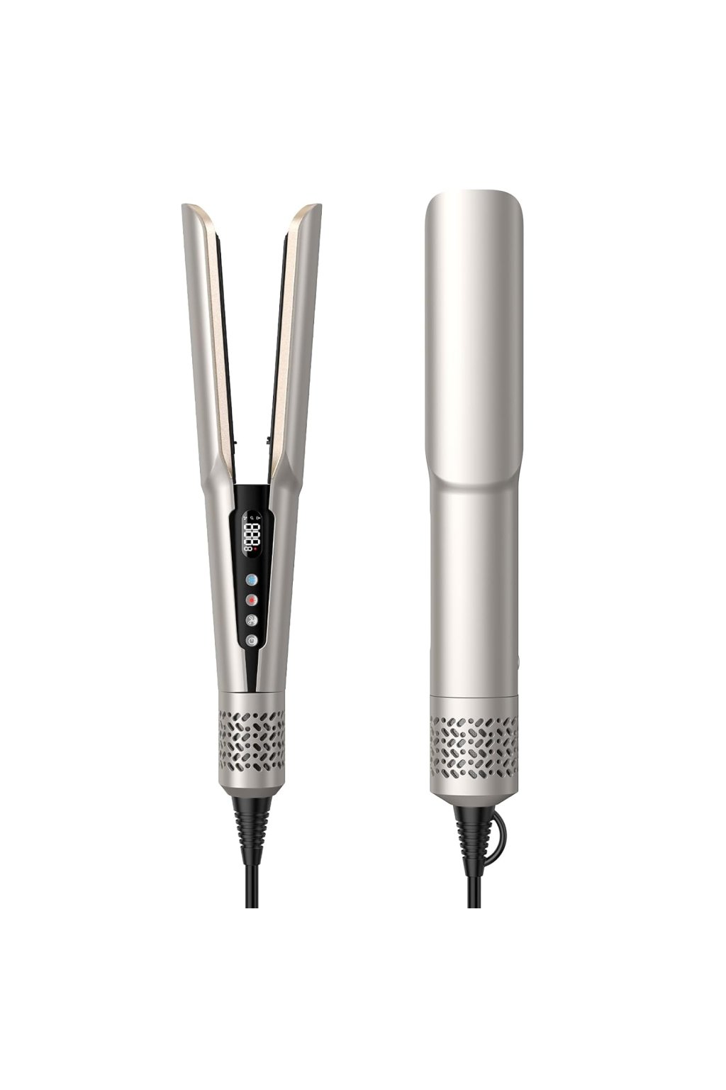 SUPGALIY 2 v 1 fén a žehlička na vlasy je inovatívny stylingový nástroj, ktorý kombinuje sušenie a žehlenie do jedného zariadenia. Vďaka vysokorýchlostnému motoru dosahujúcemu až 110 000 otáčok za minútu a prúdu vzduchu až 23 m/s umožňuje rýchle a efektívne vysušenie a vyžehlenie vlasov v jednom kroku. Nastaviteľná teplota až do 160 °C a technológia záporných iónov znižujú statickú elektrinu a zanechávajú vlasy lesklé a hladké. LCD displej a funkcia automatického vypnutia zaisťujú bezpečnosť a pohodlné ovládanie. Tento prístroj je ideálny pre všetky typy vlasov a je vhodný aj na použitie na vlhké vlasy. Jeho kompaktný dizajn ho robí ideálnym spoločníkom na cesty.