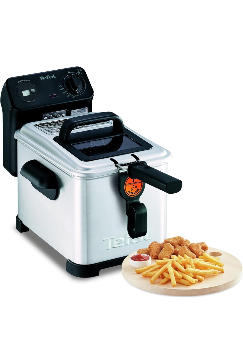 Patentovaný olejový filter Filtra Pro automaticky čistí olej po každom použití, čím predlžuje jeho životnosť a zachováva chuť jedla. Fritéza disponuje aj chladnou zónou, ktorá zabraňuje pripaľovaniu zvyškov potravín, a kontrolným okienkom, vďaka ktorému môžete priebeh vyprážania sledovať bez otvárania veka. Digitálny časovač umožňuje presné nastavenie dĺžky prípravy a všetky odnímateľné časti sú vhodné do umývačky riadu pre jednoduché čistenie.