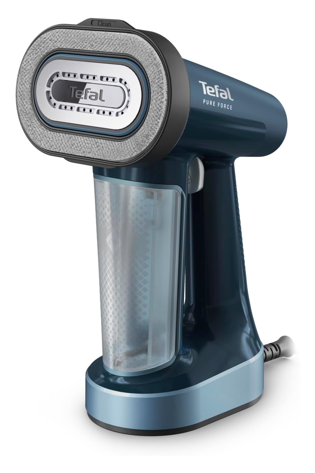 Tefal Pure Force DT8755E0 je multifunkčná parná kefa 3 v 1 s keramickou plochou a odnímateľnou nádržkou, ktorá efektívne žehlí, naparuje a odstraňuje žmolky z odevov.