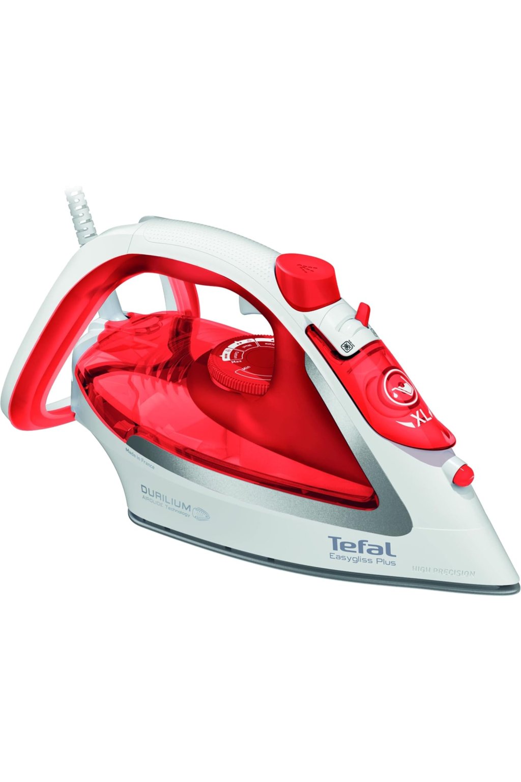 Tefal žehlička FV5737E0 Easygliss Plus v elegantnom červenom prevedení je navrhnutá pre rýchle a efektívne žehlenie s maximálnym komfortom. Vyznačuje sa technológiou Durilium AirGlide, ktorá zabezpečuje výnimočne hladký sklz po látke a rovnomerné rozloženie pary. Vďaka vysokému parnému výkonu si ľahko poradí aj s odolnými záhybmi na hrubších textíliách, zatiaľ čo presná špička uľahčí žehlenie okolo gombíkov či švov. Žehlička je vybavená funkciou proti odkvapkávaniu, čo zabraňuje vzniku škvŕn na oblečení, a tiež systémom samočistenia, ktorý predlžuje jej životnosť. S praktickou funkciou vertikálneho naparovania je možné osviežiť odevy priamo na vešiaku alebo závesy bez nutnosti použitia žehliacej dosky. Ergonomický dizajn a jednoduché ovládanie robia z tohto modelu spoľahlivého pomocníka do každej domácnosti.