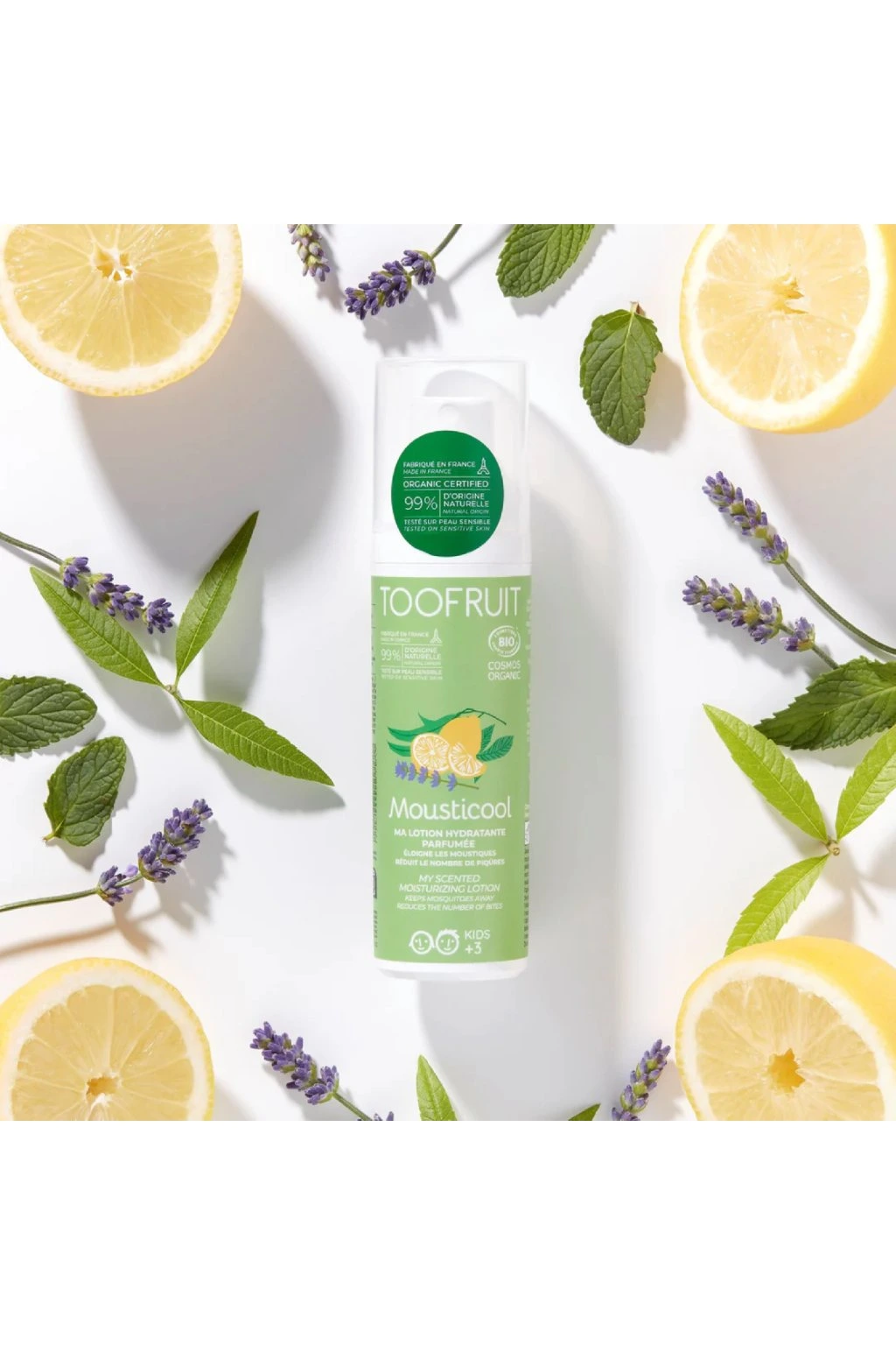 Prírodné hydratačné mlieko TooFruit Mousticool je špeciálne navrhnuté pre citlivú detskú pokožku. Spája účinnú hydratáciu s prirodzenou ochranou proti komárom vďaka starostlivo vybraným prírodným zložkám a sviežej citrusovo-bylinnej vôni.