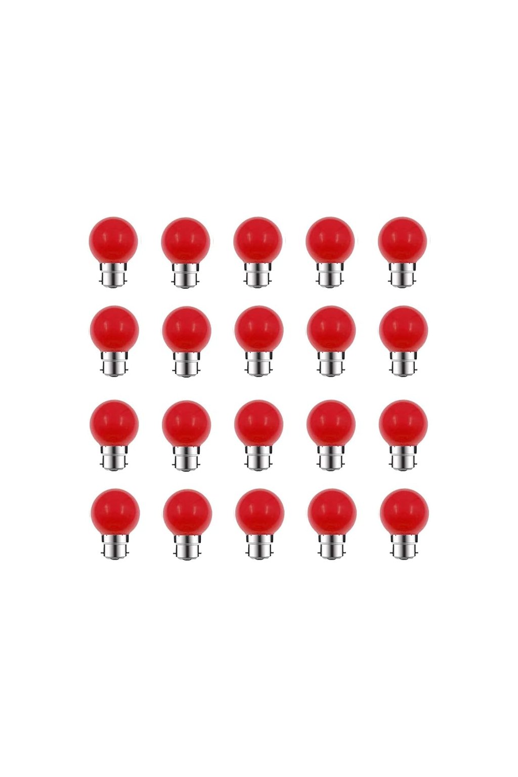 ZFQ B22 farebné LED žiarovky - 20 kusov farba červená 2W ekvivalent 20W B22 bajonetové LED reťazové žiarovky meniace farbu LED vianočné žiarovky s päticou BC, pre domáci bar, párty