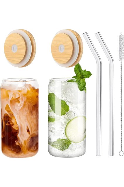 Sada prémiových pohárov Boba – sada sklenených pohárov so slamkami a viečkami obsahuje 2 x 480 ml sklenené poháre v plechovkách, 2x bambusové slamky, 2 x opakovane použiteľné...